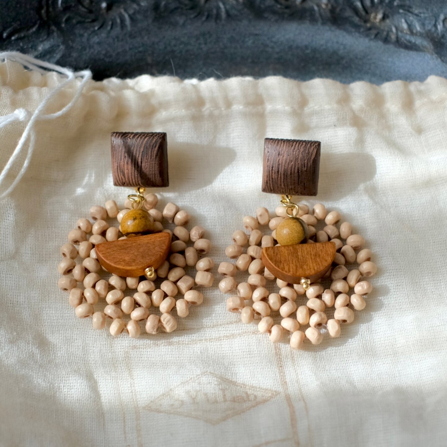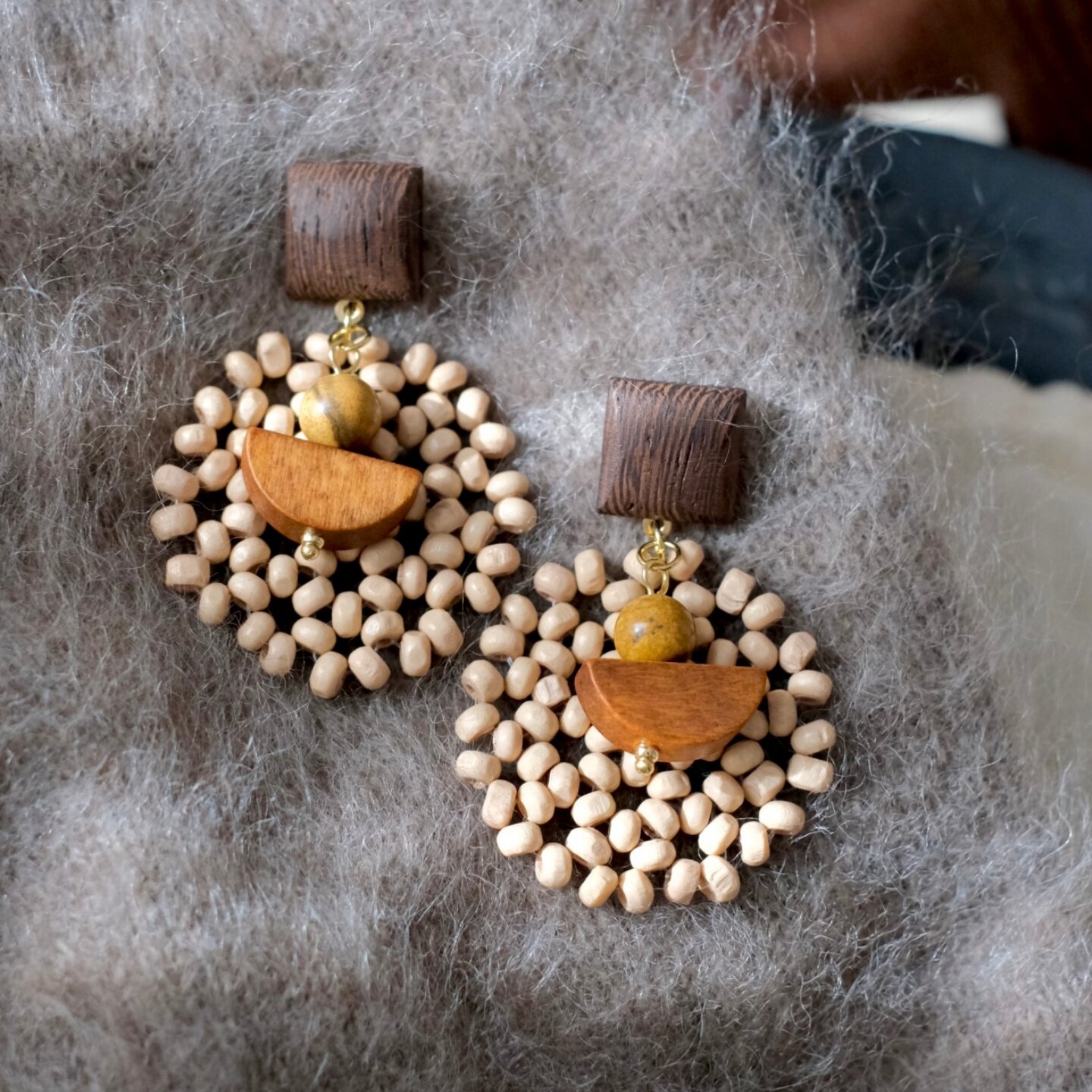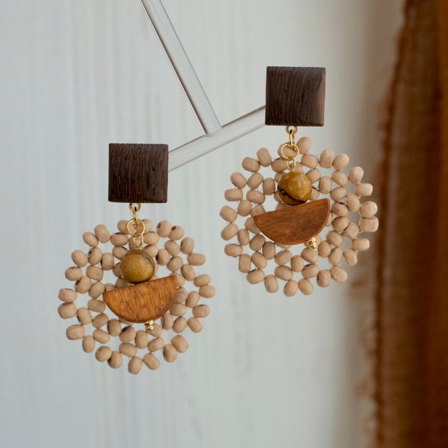《栗木苔》原创度假文艺夸张民族风木质串珠森系复古耳环耳夹耳饰