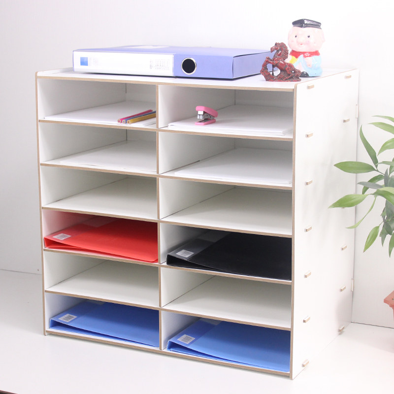 多层桌面文件架子20格A4纸办公学生书架座框木质收纳架盒置物架