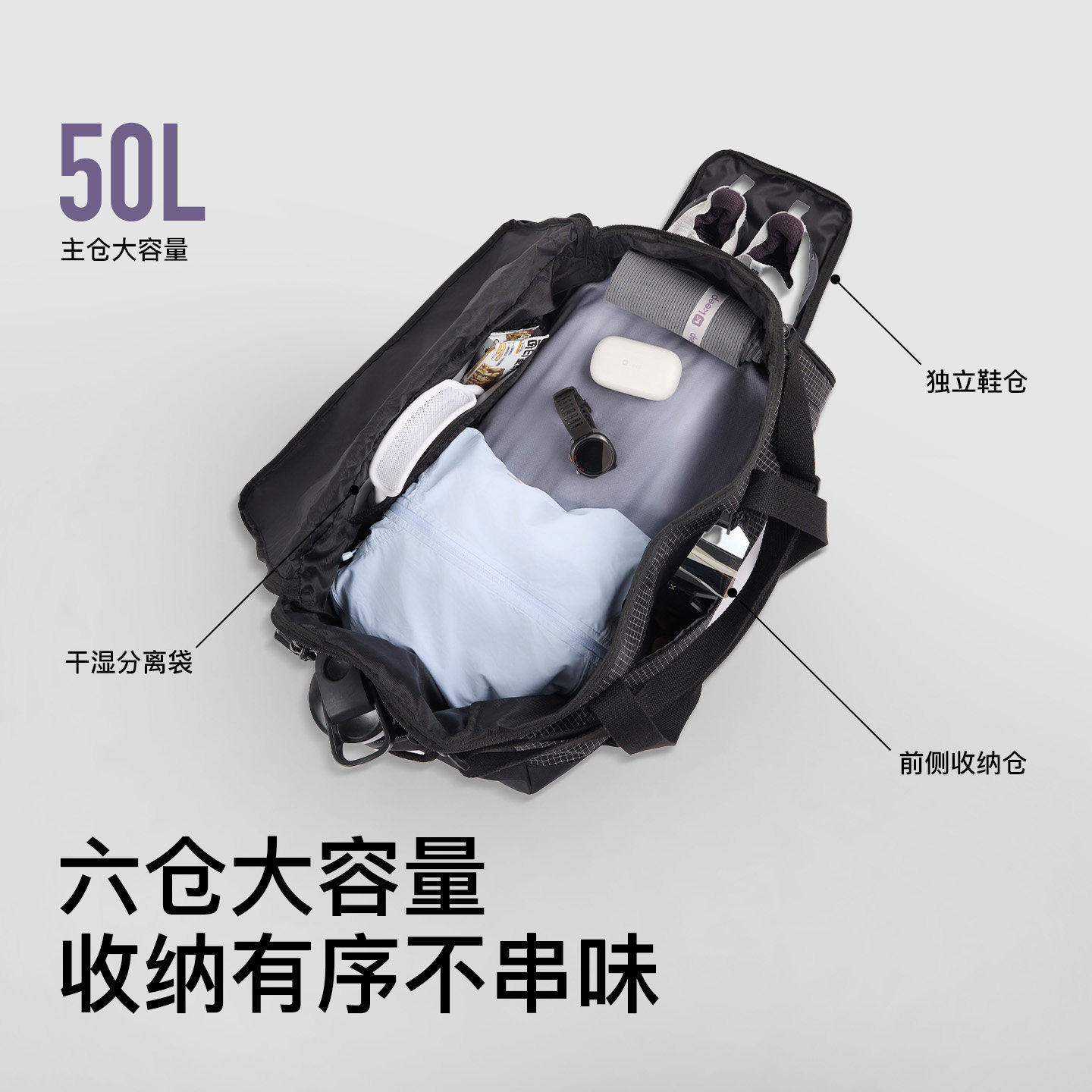 keep大容量斜挎旅行包男手提短途登记旅游行李袋女干湿分离健身包