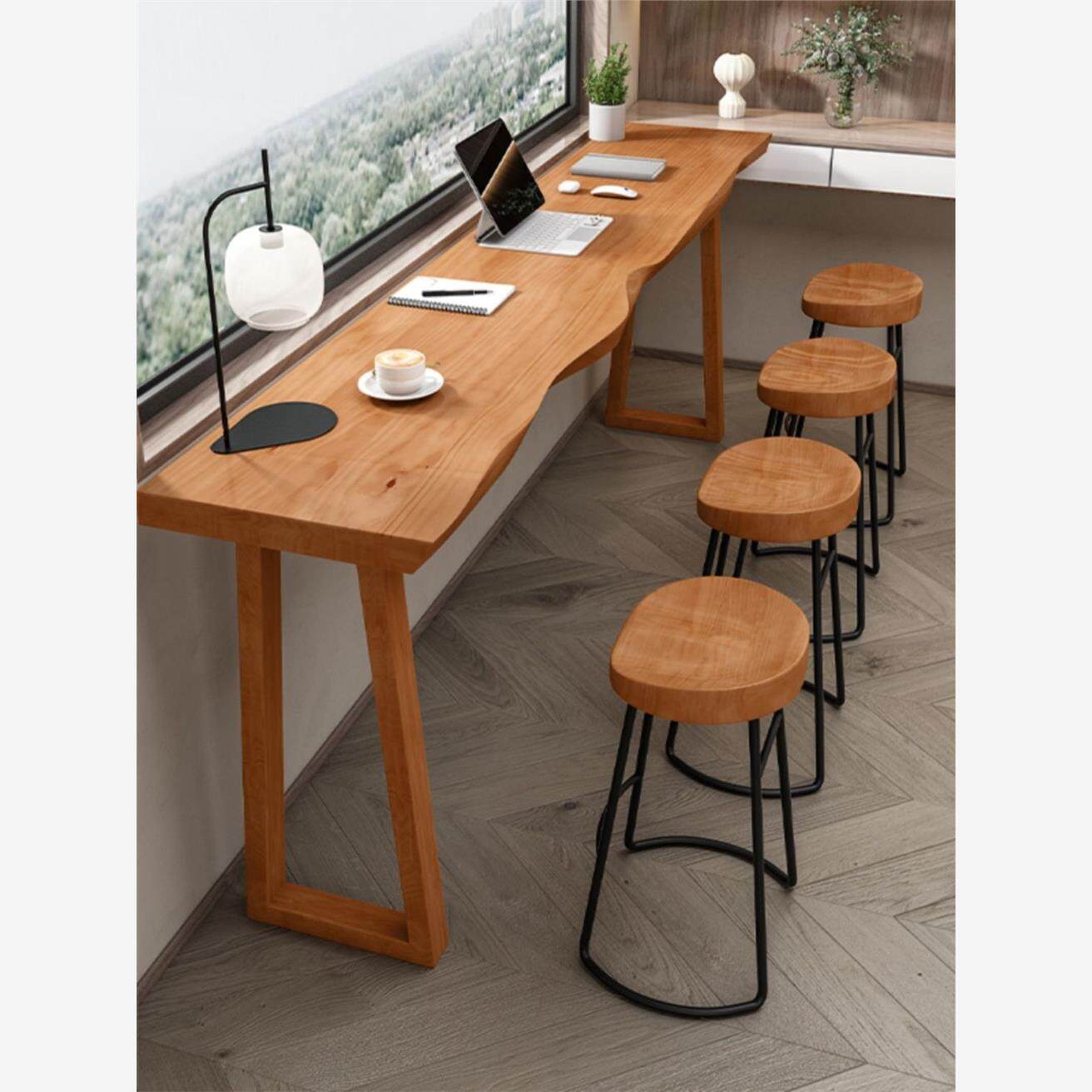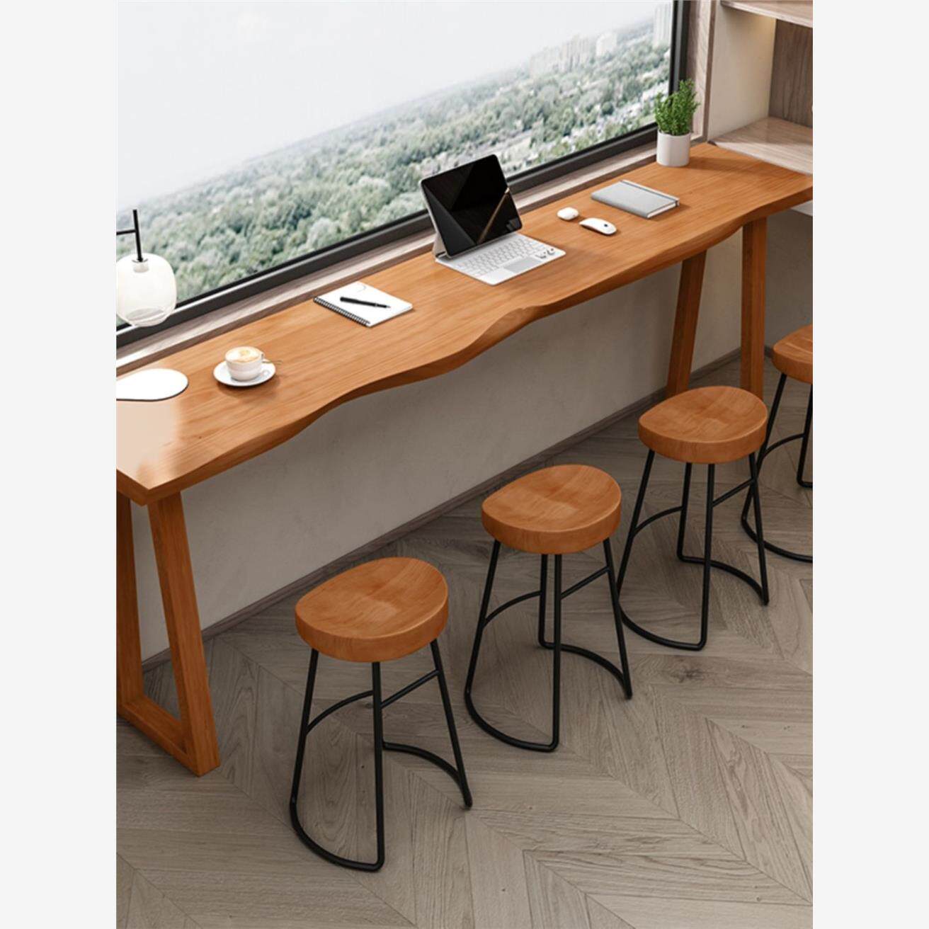 2025新实木吧台桌靠墙阳台休闲酒吧台咖啡厅甜品奶茶店商用高脚桌