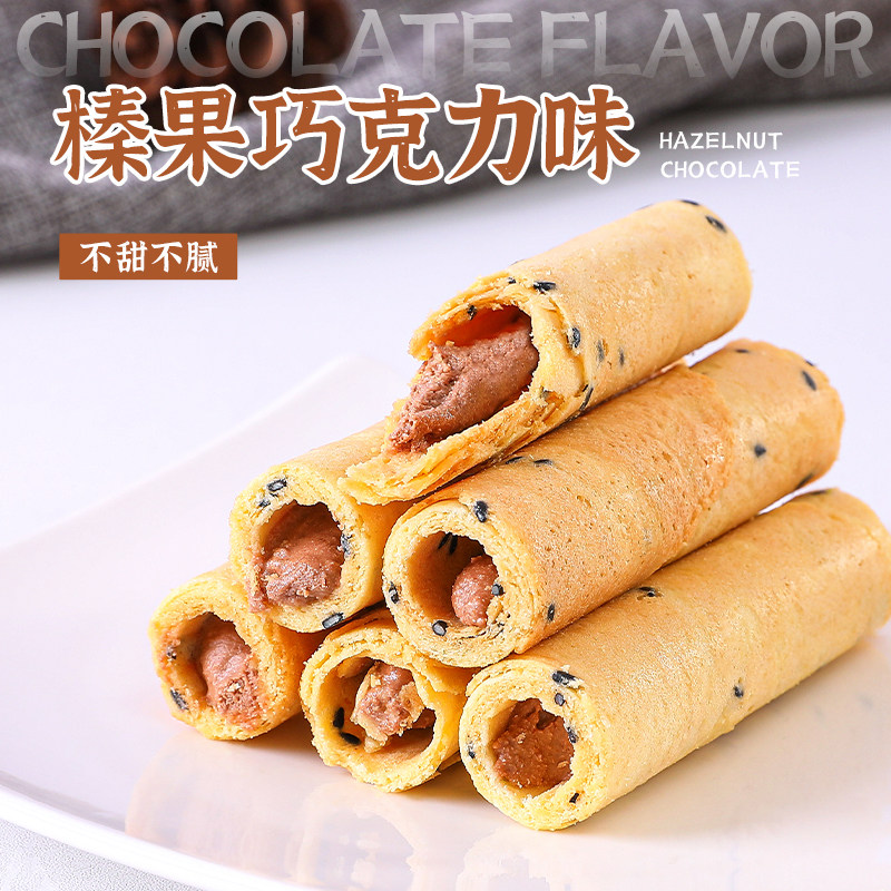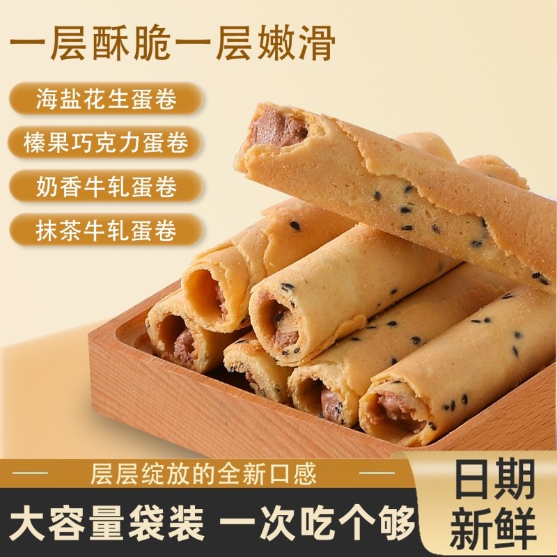蛋卷夹心海盐花生口味榛果巧克力鸡蛋卷饼干香酥解馋零食抹茶牛轧