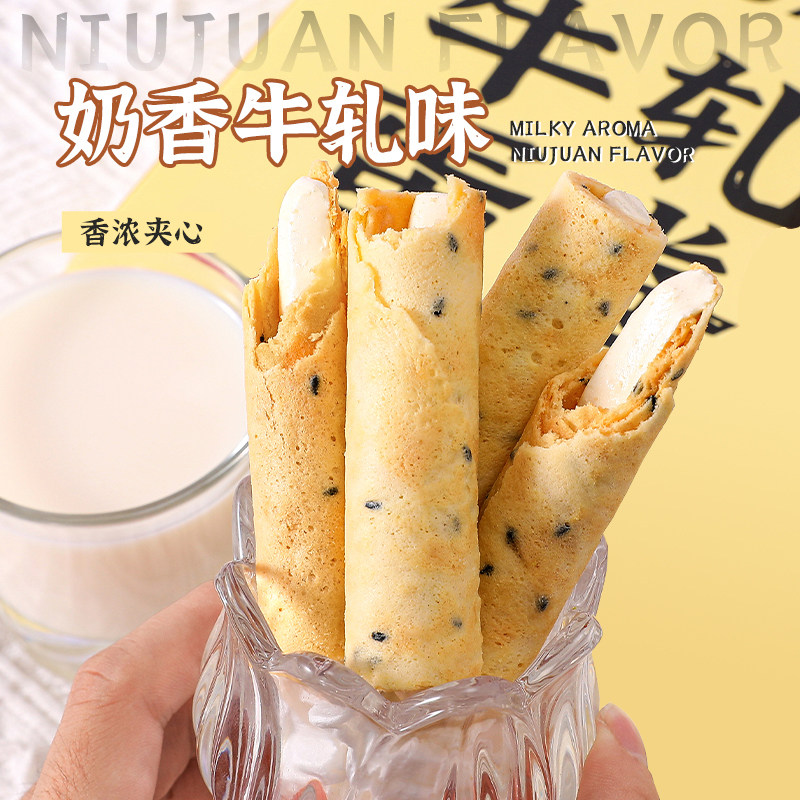 味滋源手工蛋卷鸡蛋酥卷芝麻味奶香味饼干休闲零食小吃批发点心