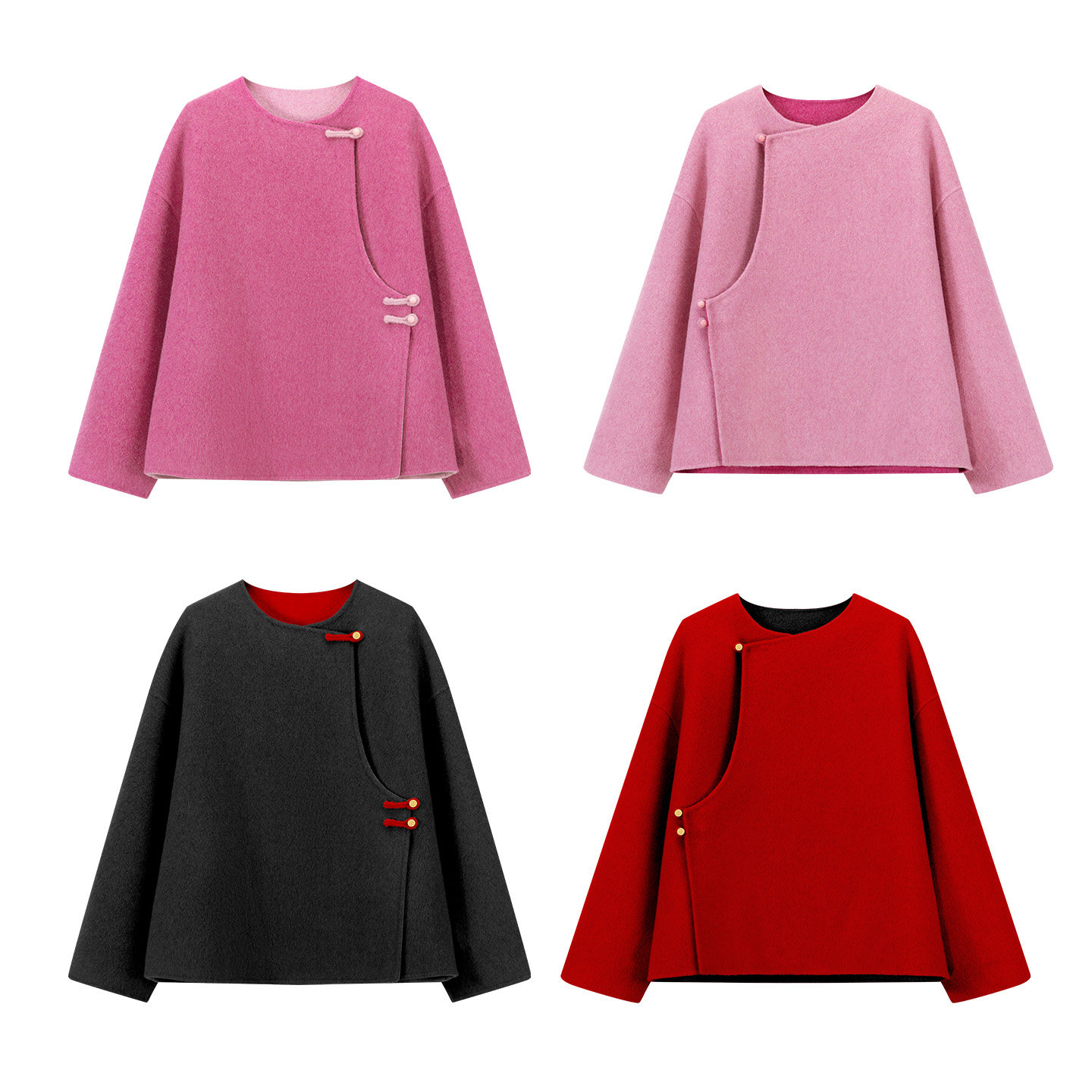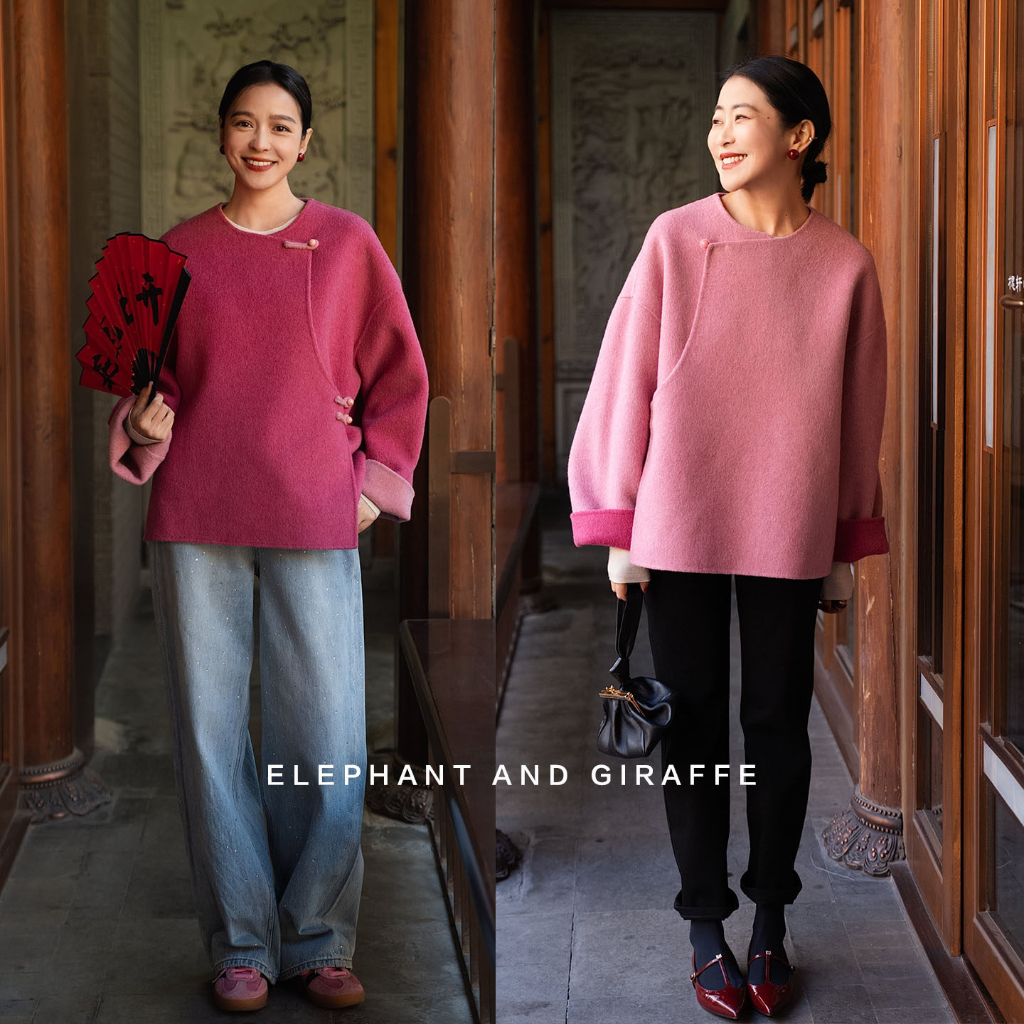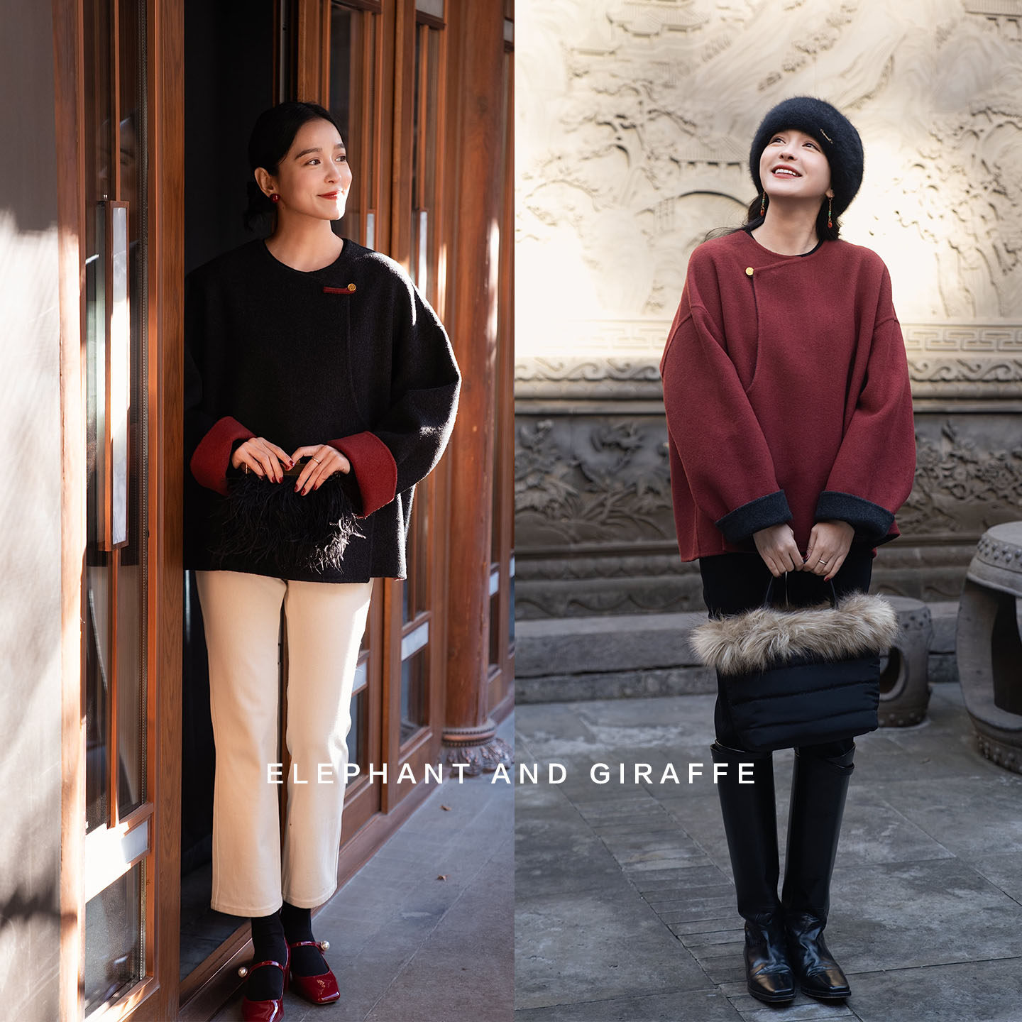 大象和长颈鹿 如意随喜 两面穿双色毛呢外套 新中式过年款 601117