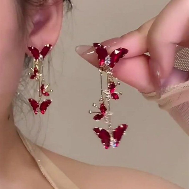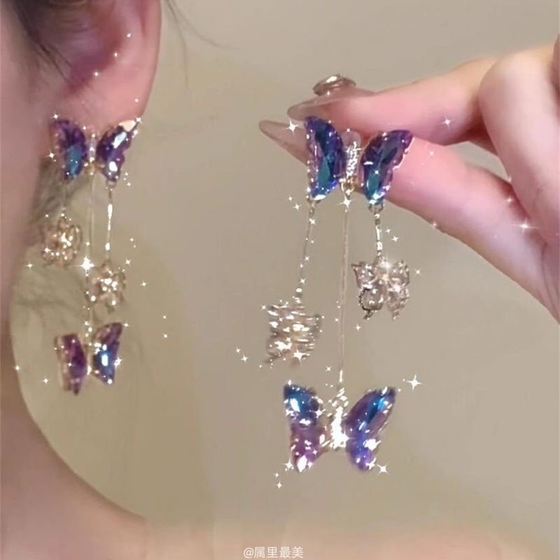 FIXOOFIX轻奢水钻蝴蝶耳环紫色高级感耳坠小众设计感气质耳钉耳饰