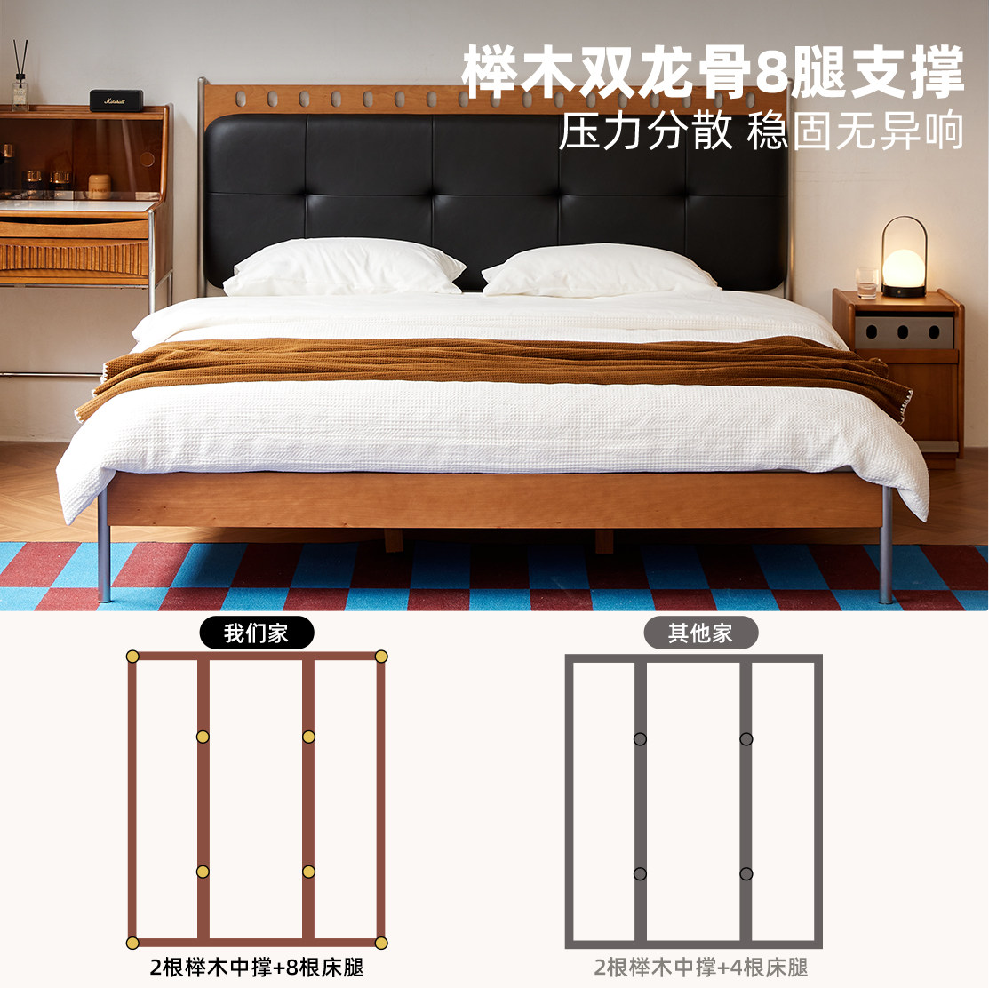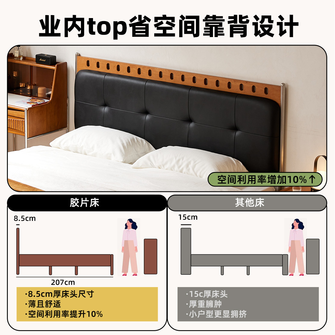 全实木齐边薄床头床小户型1.5m现代简约卧室双人床可定制任意尺寸