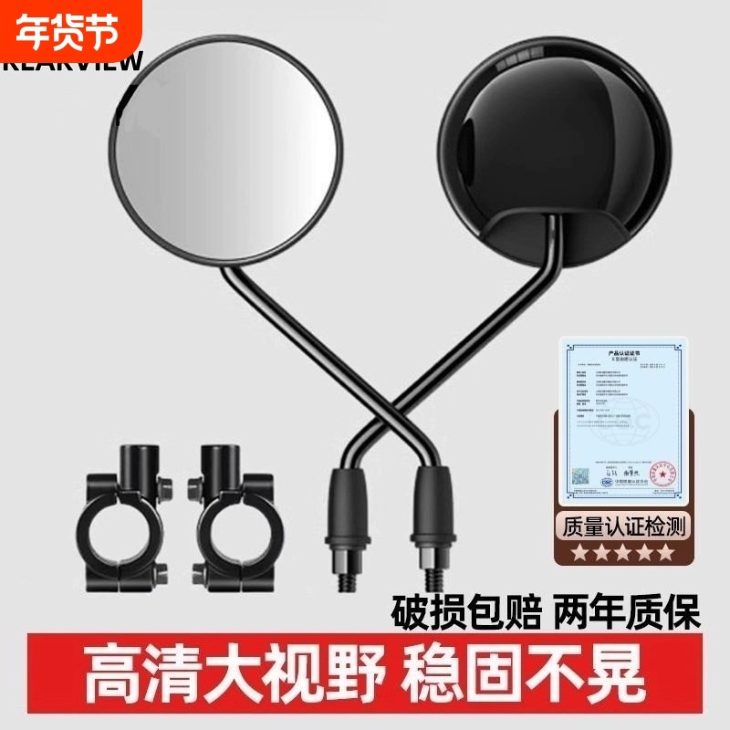 电动电瓶车后视镜自行车圆镜适用雅迪爱玛通用大视野倒车反光镜子