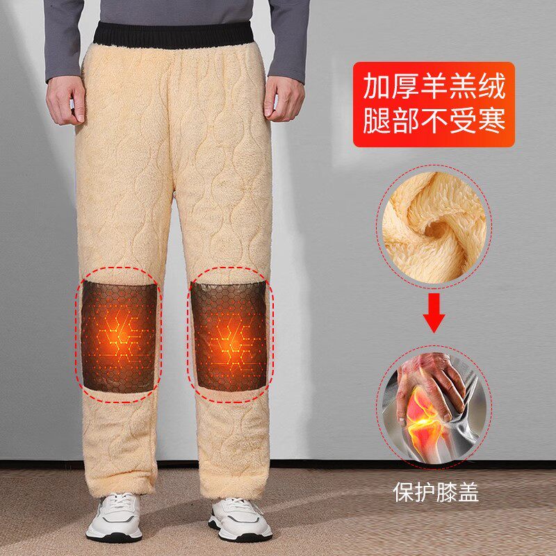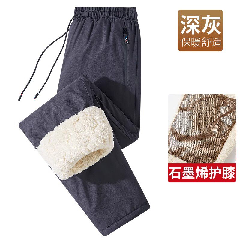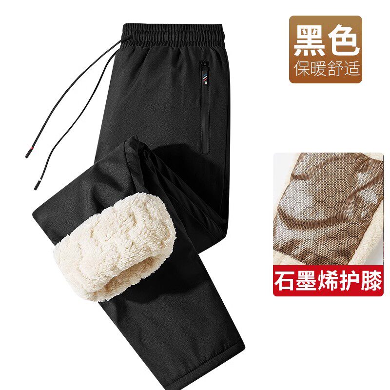 爸爸加绒裤子男冬季中老年男士加厚休闲裤老人羊羔绒棉裤外穿防水