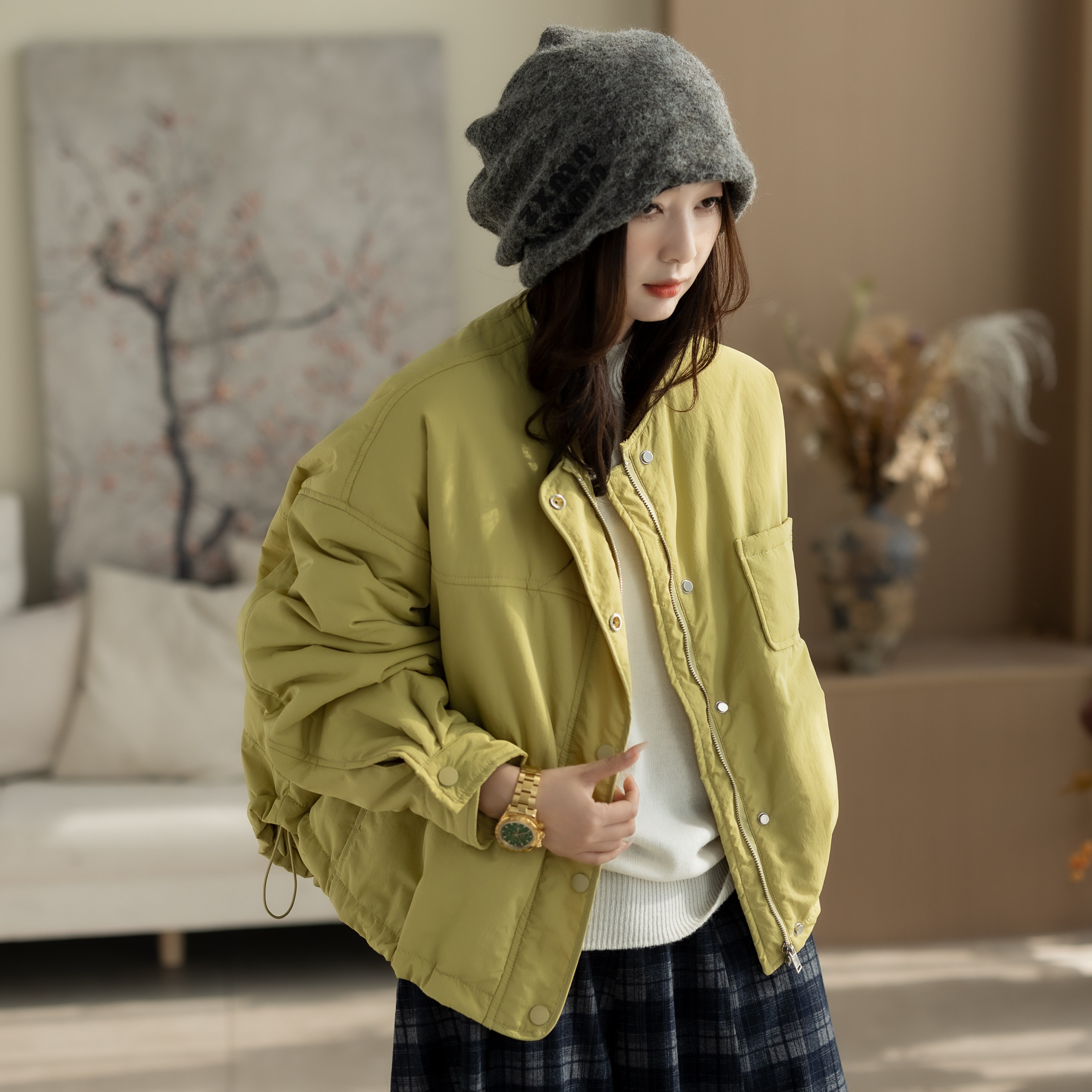 时尚短款新款羽绒棉服2025冬季洋气显瘦遮肚加厚保暖休闲棉衣潮