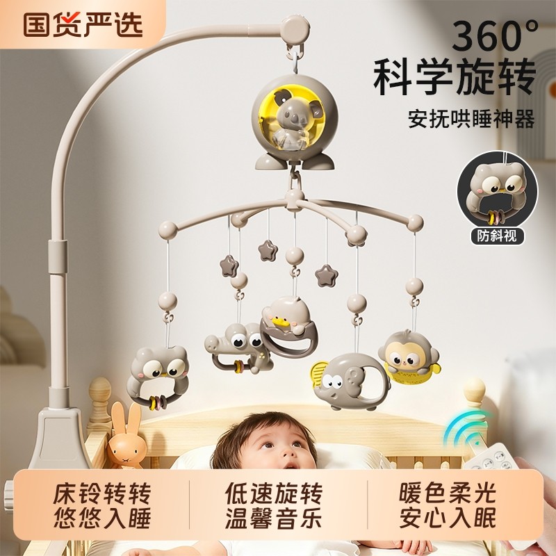 新生婴儿床铃0-1岁3-6个月宝宝玩具旋转床头摇铃车挂件悬挂式支架