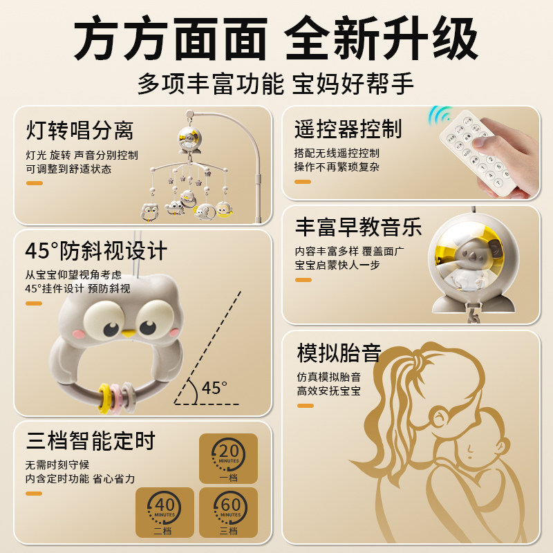 新生儿床铃婴儿玩具0到3个月宝宝床头摇铃旋转音乐悬挂式车吊挂件