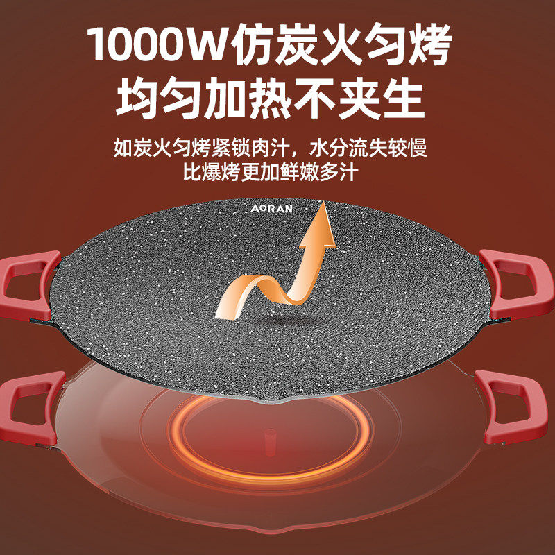 奥然电烤盘家用烤肉盘烤鱼一体锅韩式多功能烤锅烧烤架烧烤盘不粘