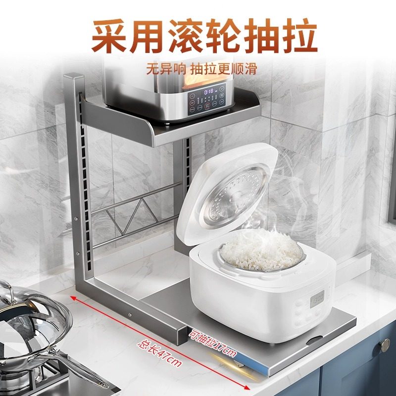 电饭煲置物架厨房台面微波炉架电器烤箱空气炸锅多功能抽拉收纳架