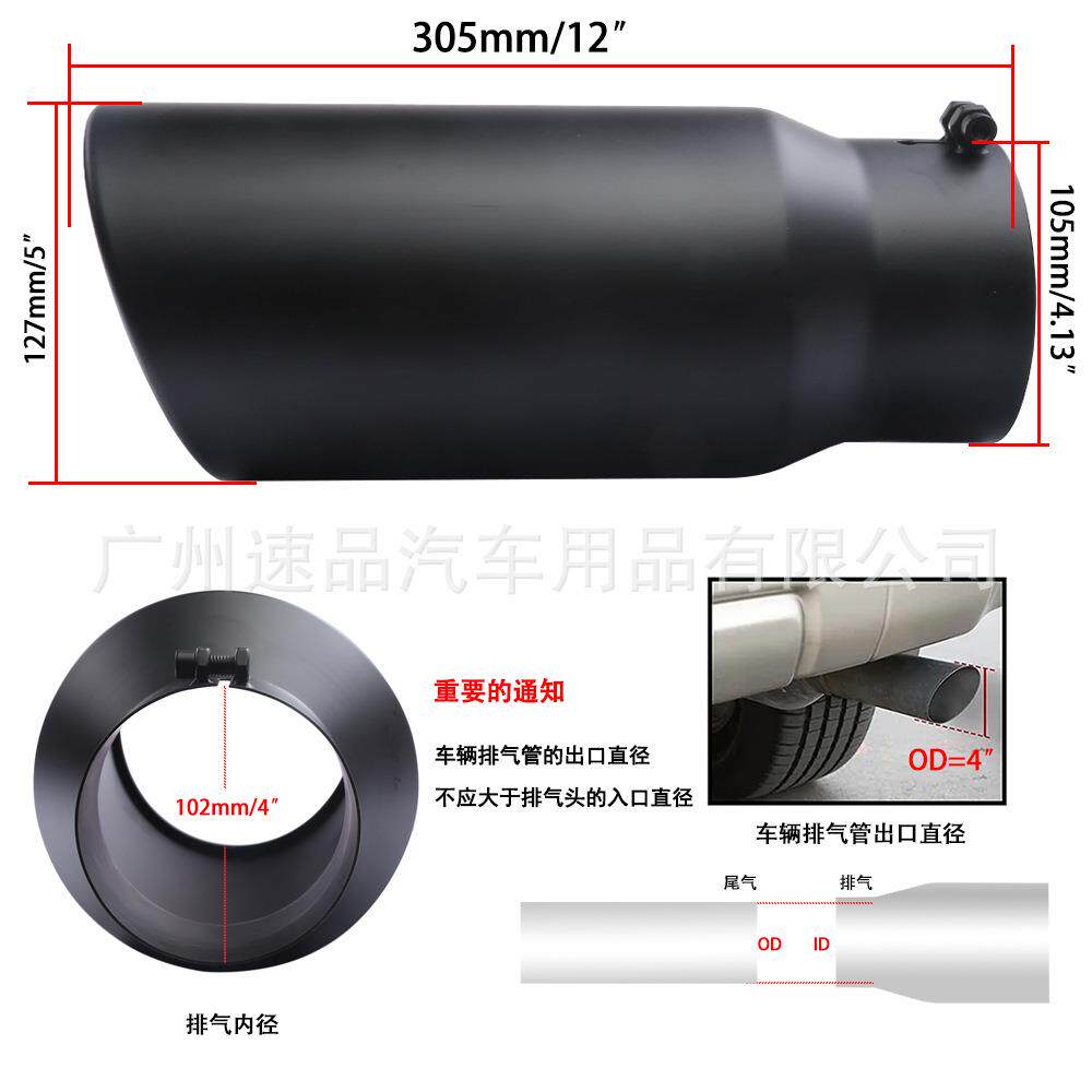 12寸15寸长柴油车皮卡车改装尾喉烤黑卷边不锈钢尾喉排气管消声器