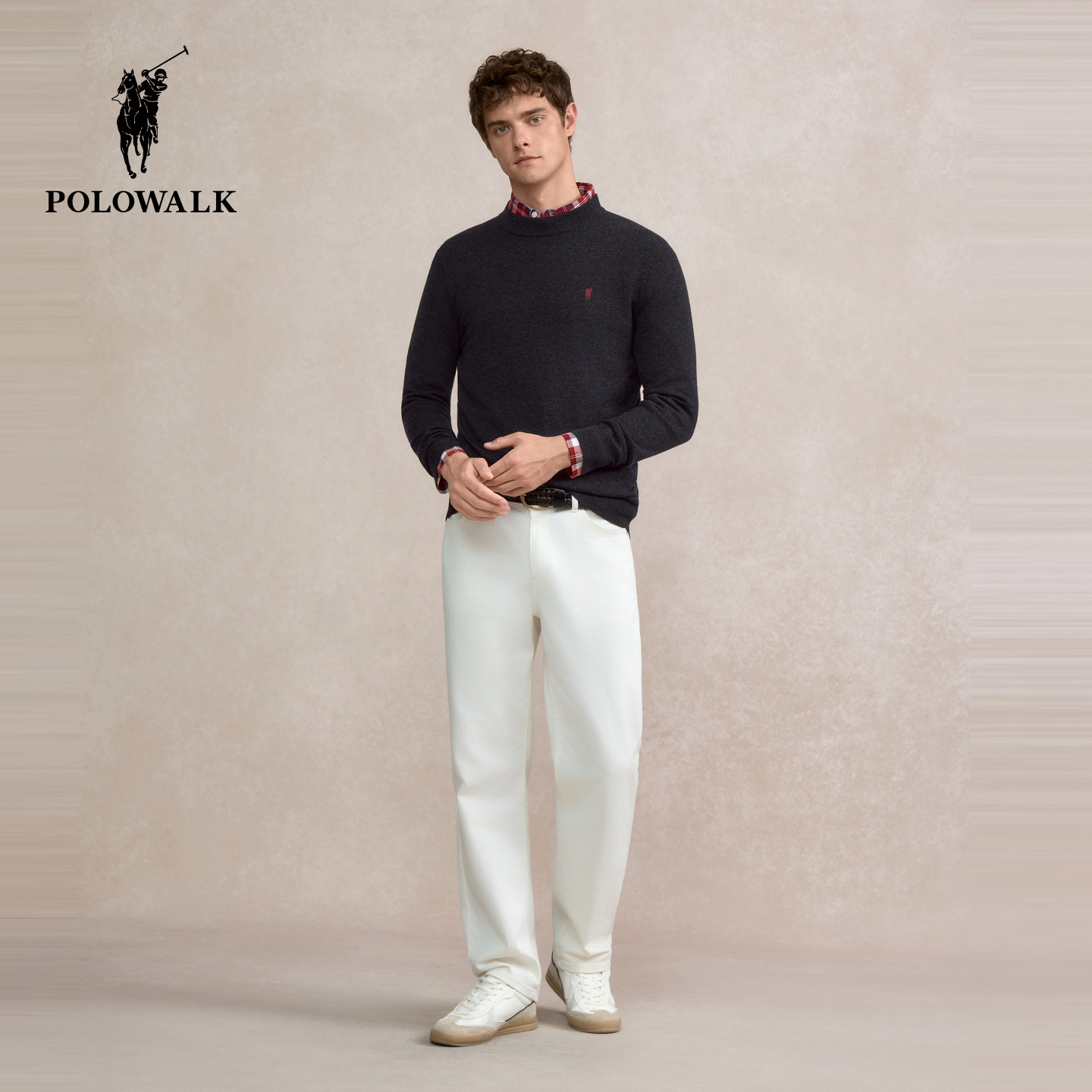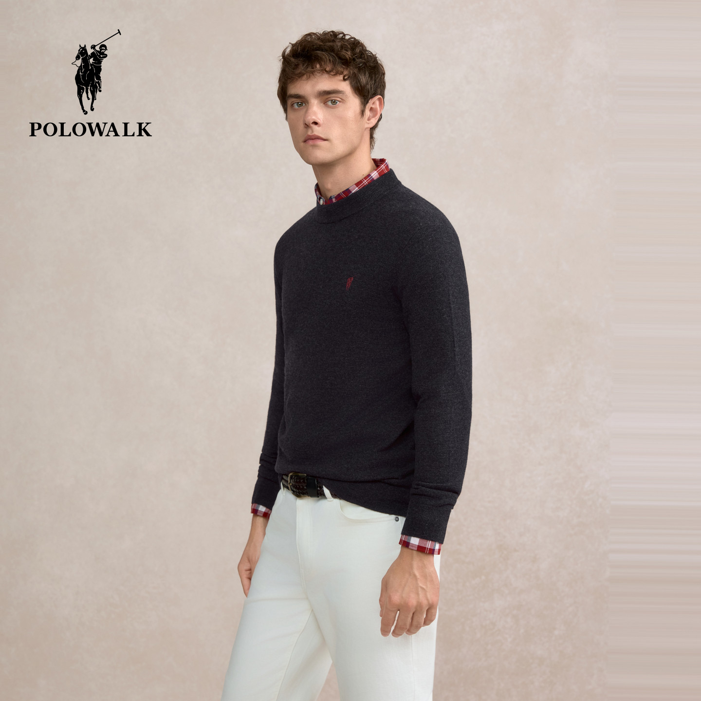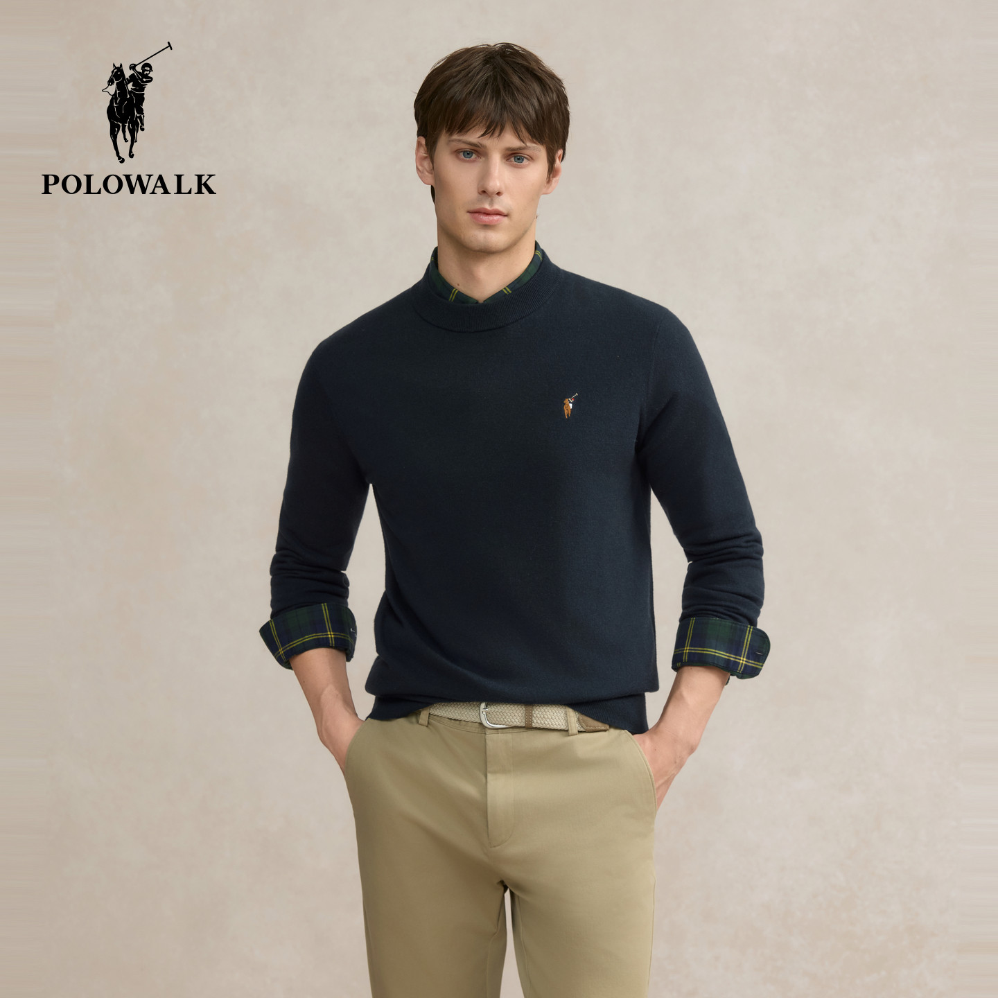 【100%绵羊毛】POLOWALK男式羊毛衫2025冬季新品套头圆领打底衫男