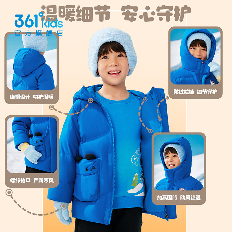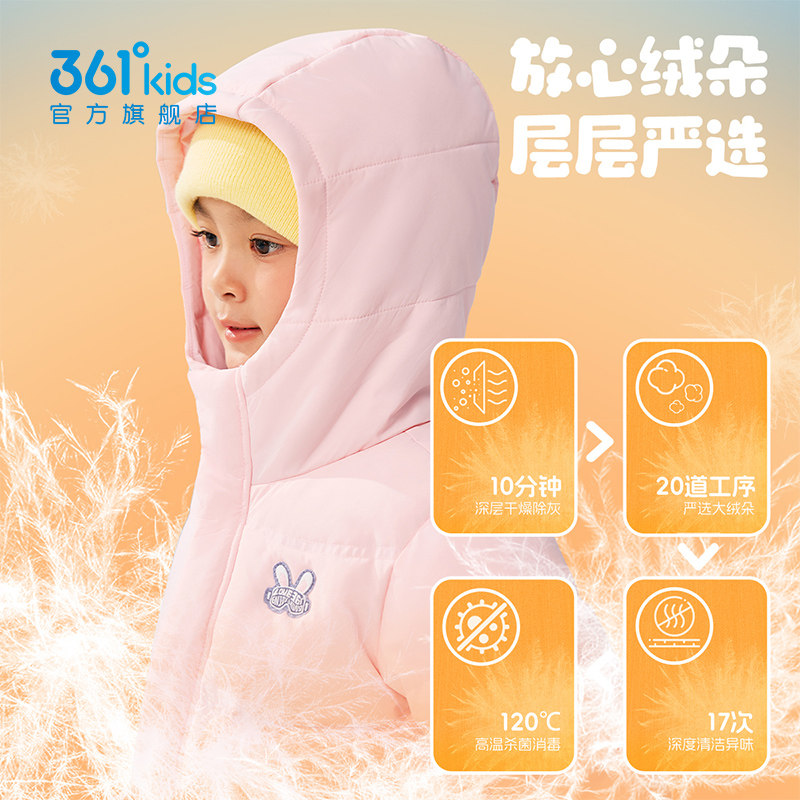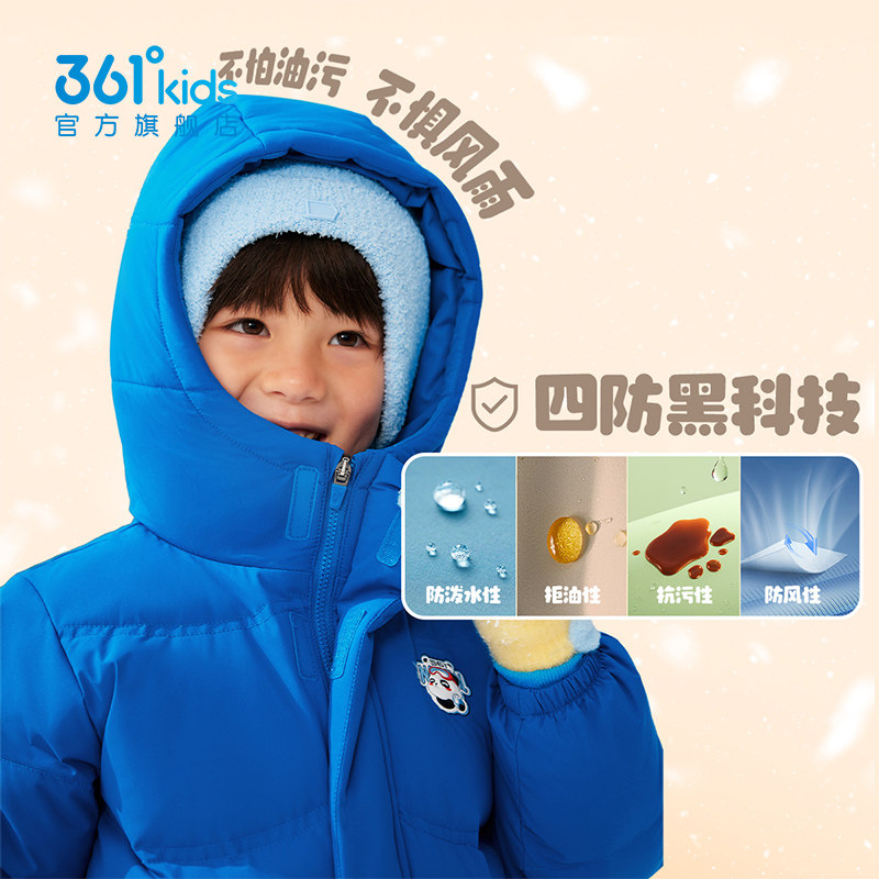 四防科技|361度童装男童连帽中长女童羽绒服冬季新款儿童加厚外套