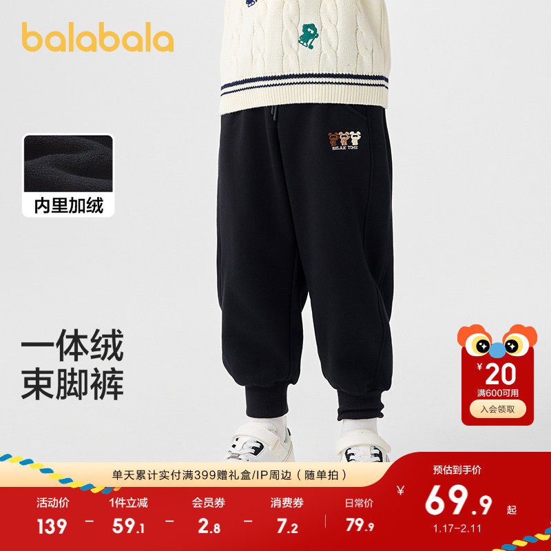 巴拉巴拉童装儿童长裤男童秋冬装加绒束脚休闲裤保暖加厚百搭大童