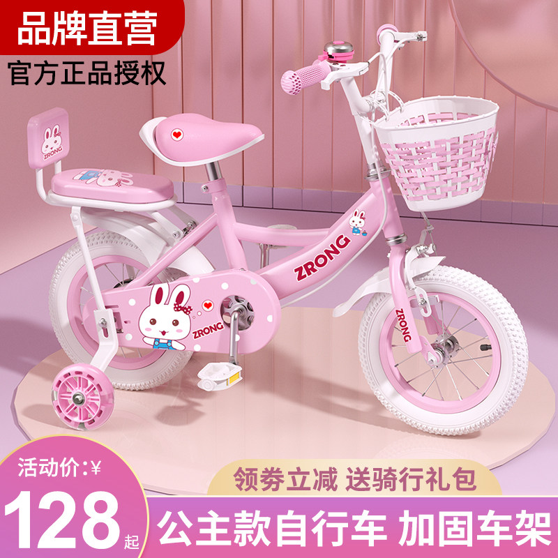 紫榕儿童自行车女孩3-6-8-12岁宝宝女童车可折叠脚踏单车带辅助轮