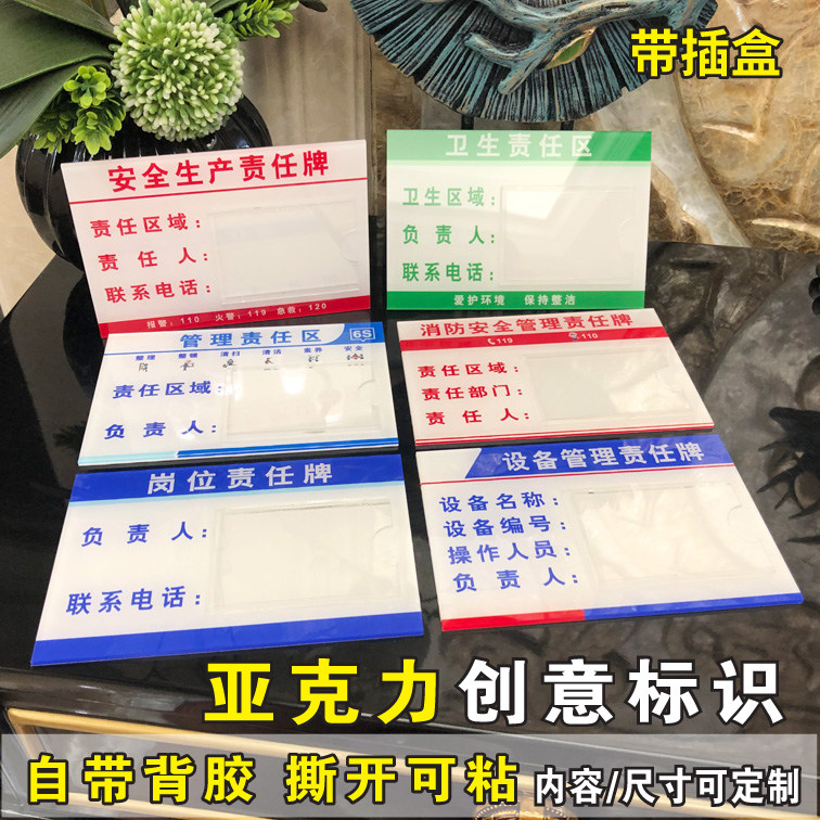 亚克力插卡消防安全废物仓库卫生区域负责人岗位责任牌设备6S管理责任标识牌安全生产设备管理牌带卡槽可定制