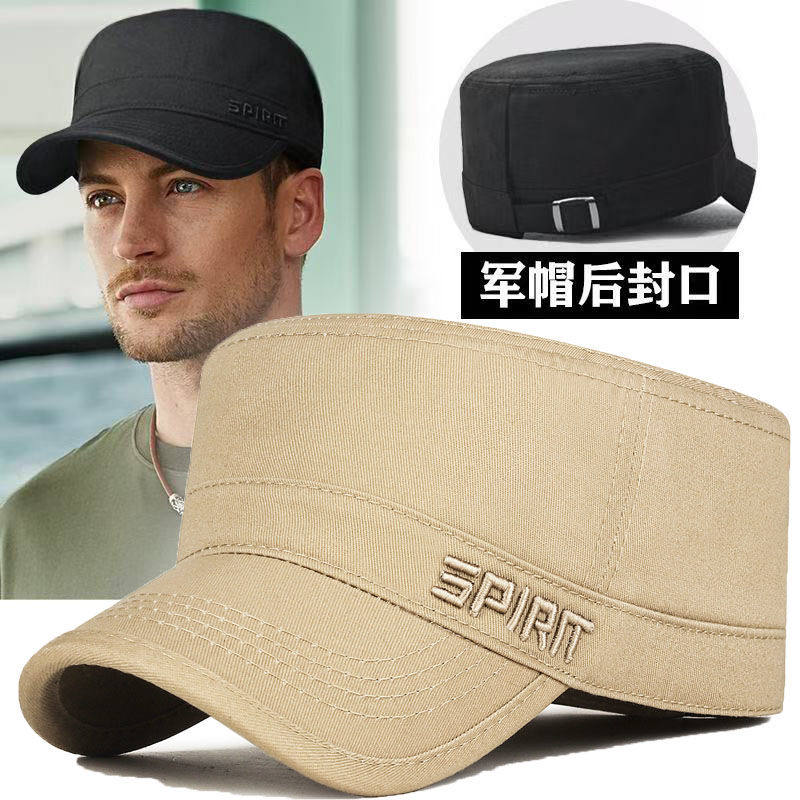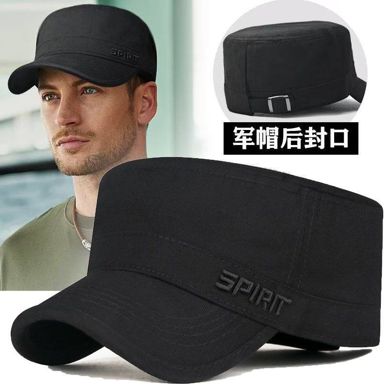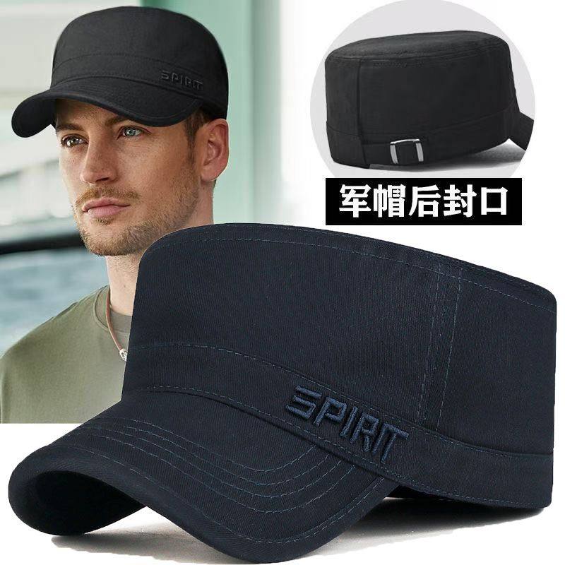 封口帽子春秋男士休闲调节平顶纯棉遮阳中老年鸭舌帽棒球帽刺绣