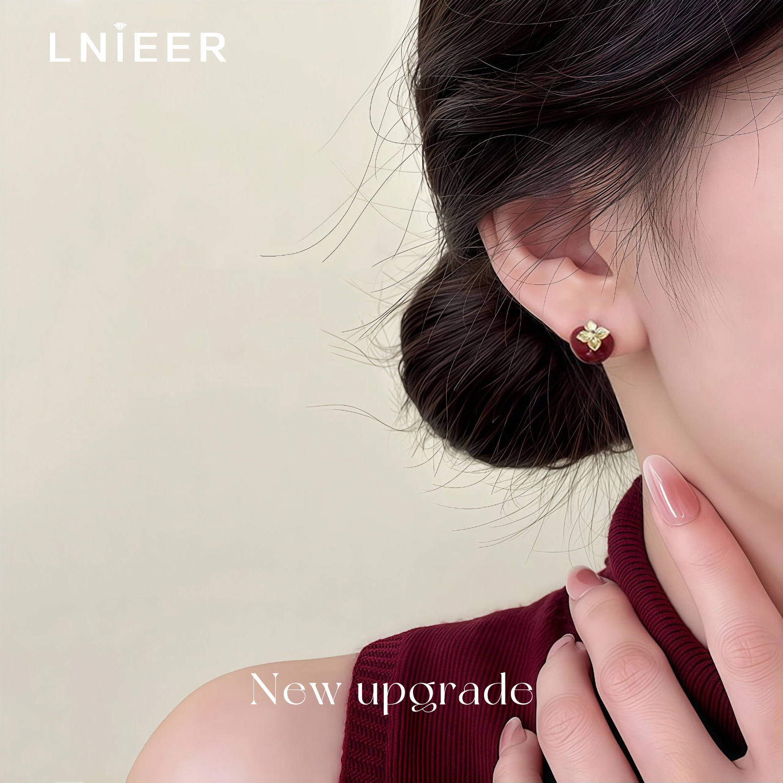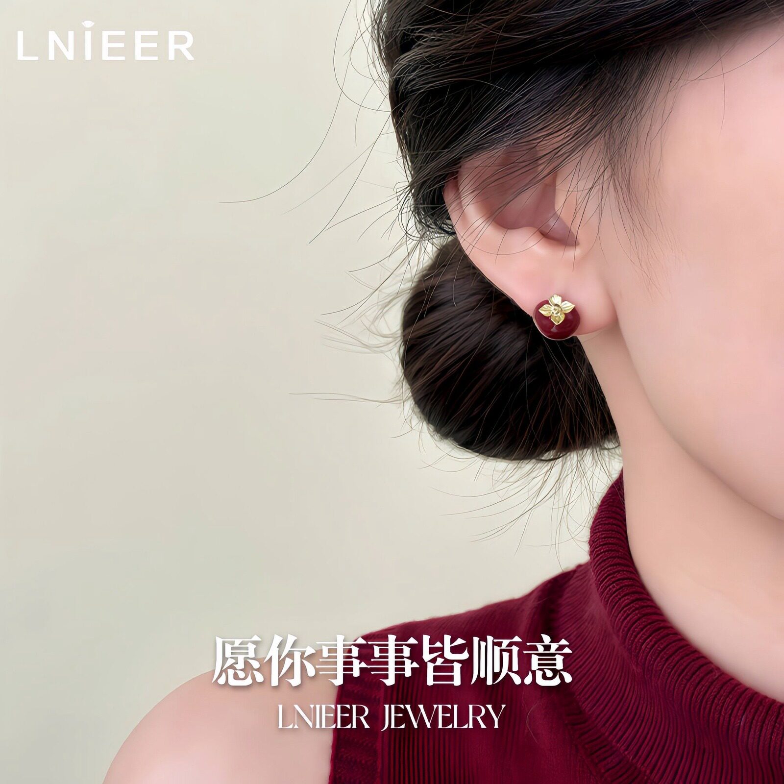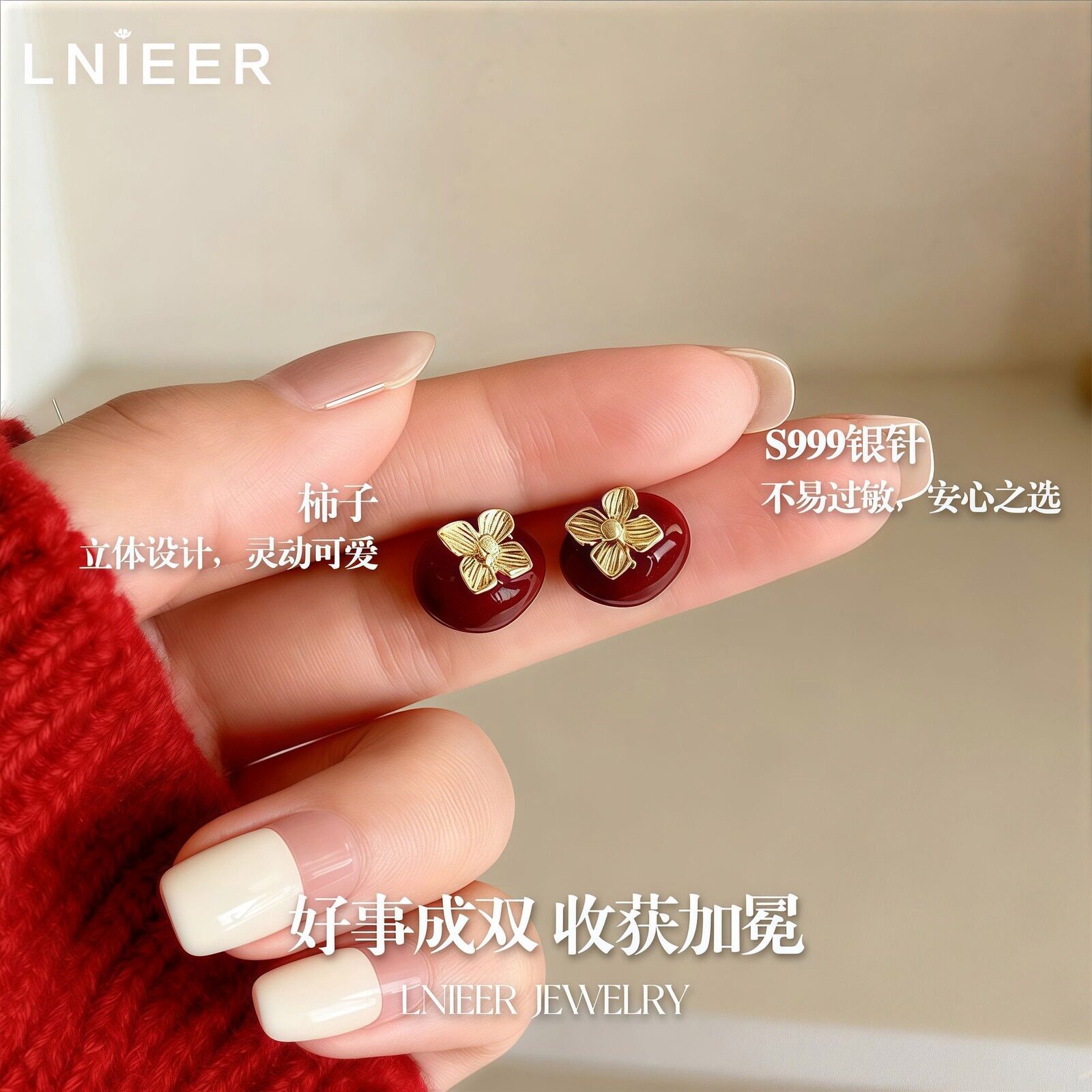 S999纯银针柿柿如意耳钉秋冬高级感耳环新年红色2026新款爆款耳饰
