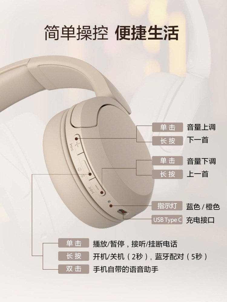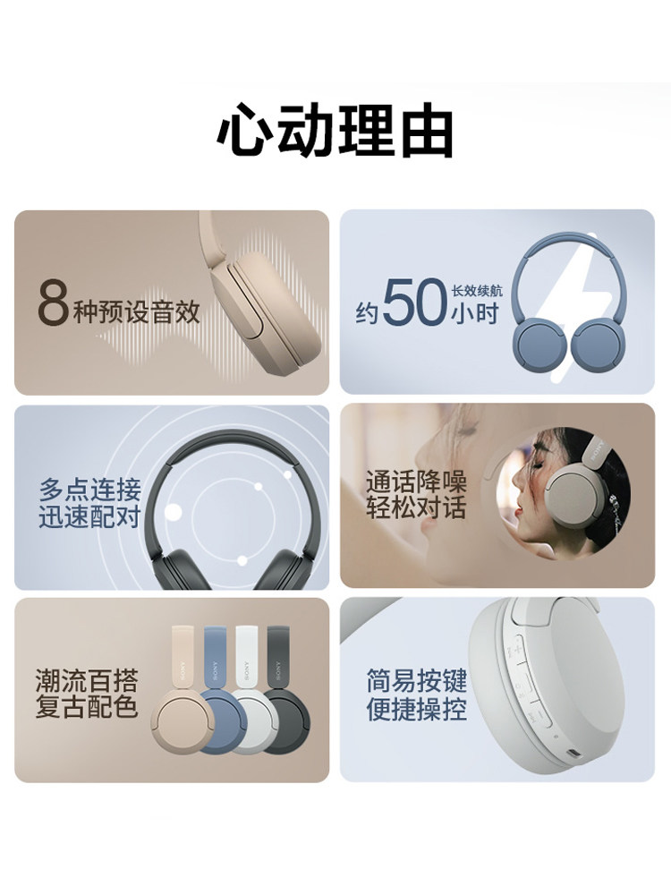 国行现货 Sony/索尼 WH-CH520 头戴式无线蓝牙立体声耳机舒适佩戴