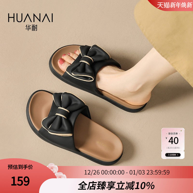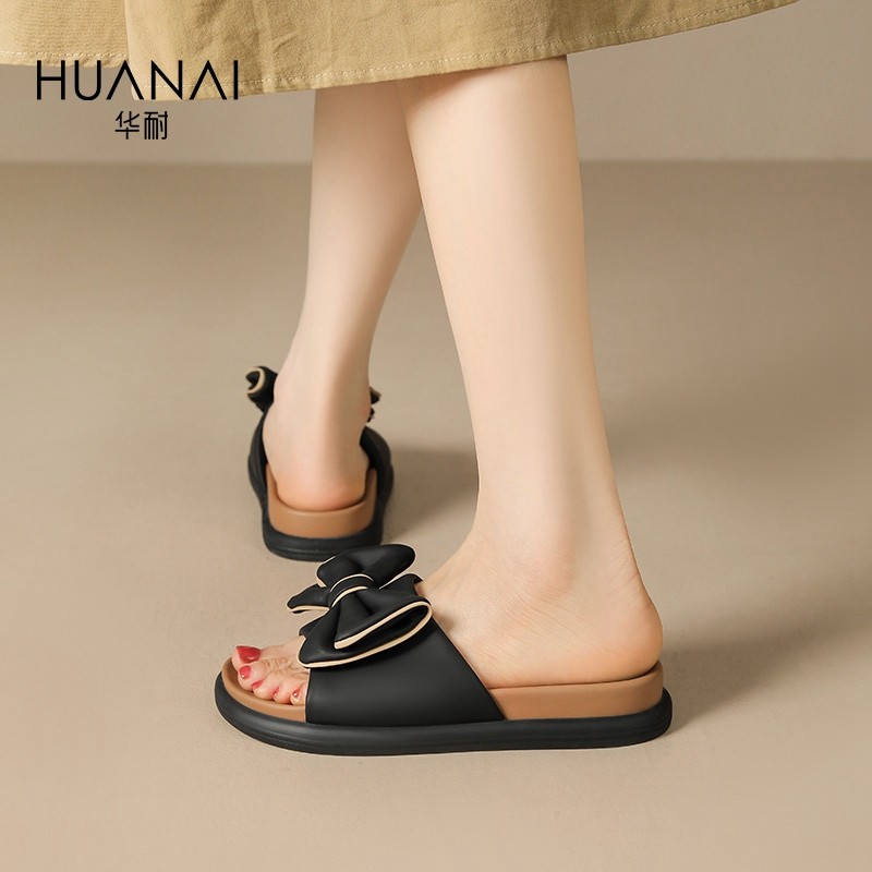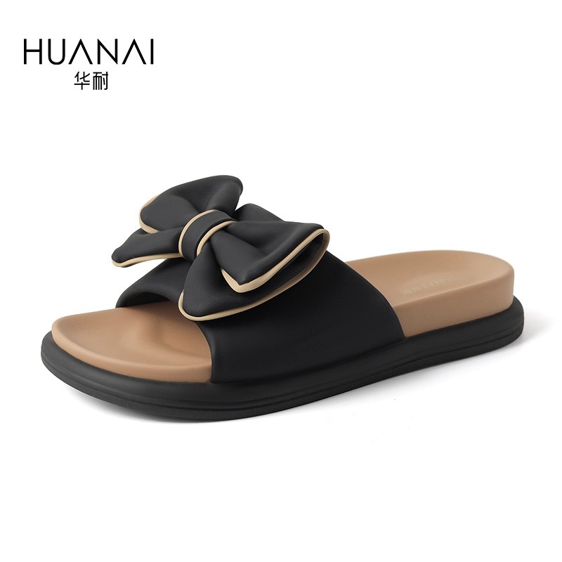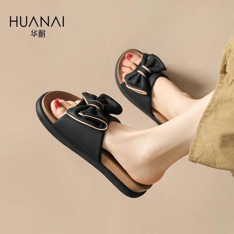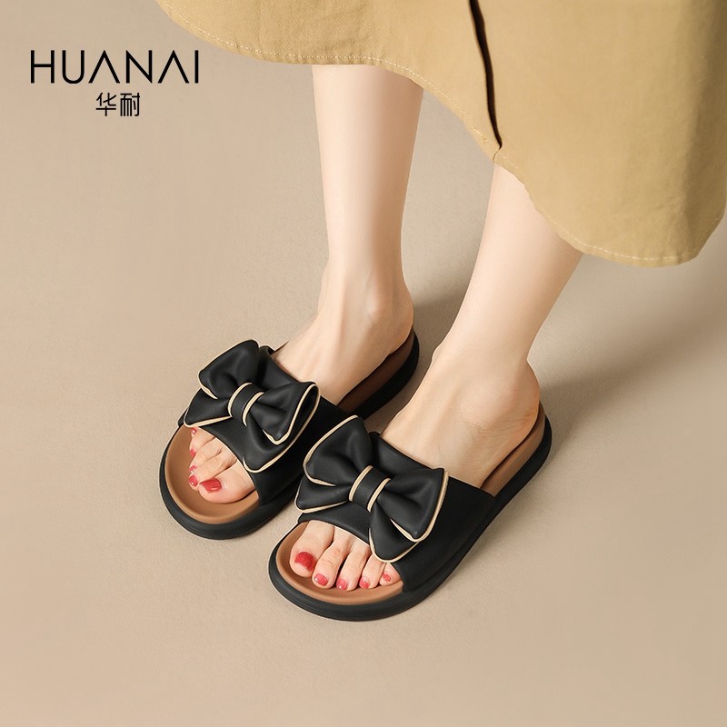 华耐蝴蝶结凉拖鞋女2025夏季新款防滑软底外穿一字带沙滩凉鞋拖鞋