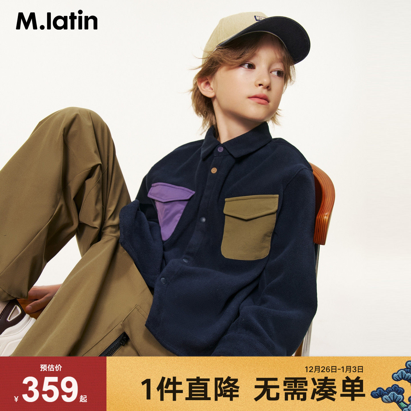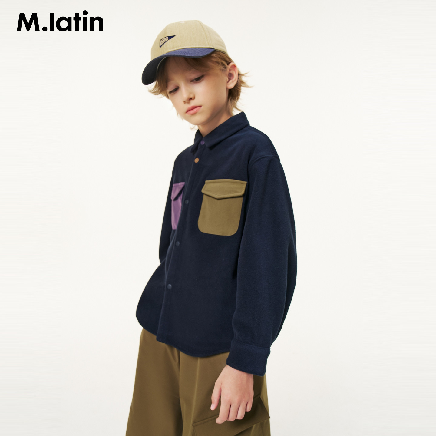 【商场同款】马拉丁儿童衬衣25冬新款男大童撞色口袋摇粒绒衬衫