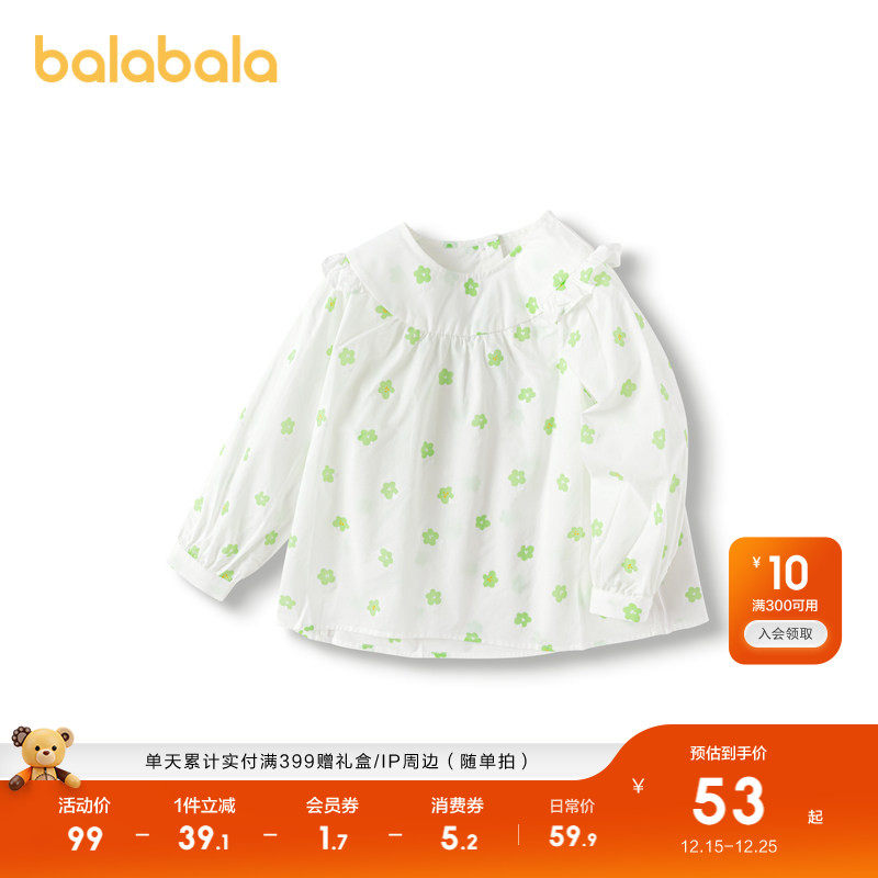 巴拉巴拉童装儿童长袖衬衫女童上衣春秋装清新碎花上衣百搭小童潮