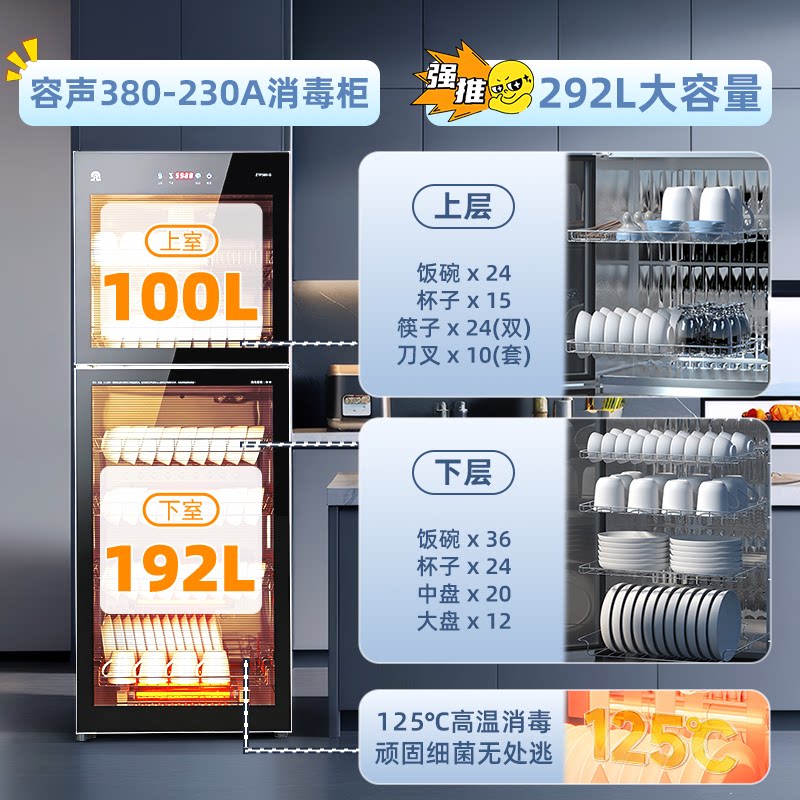 【高温二星】容声消毒柜立式家用大容量商用厨房消毒碗柜380-230A
