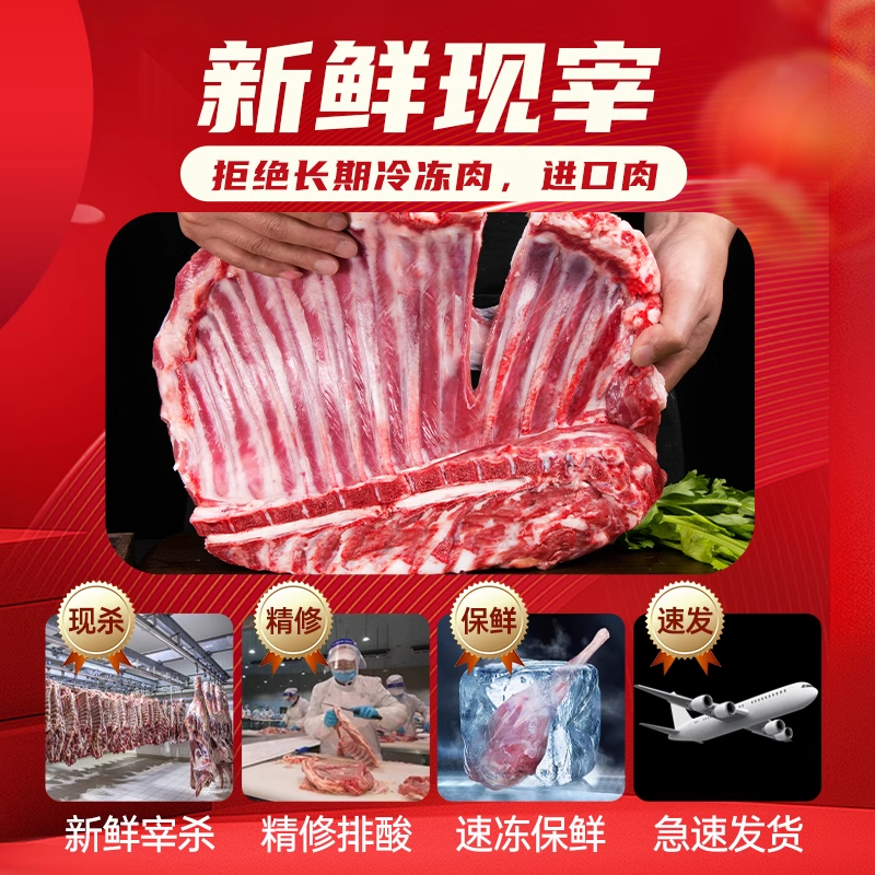 新鲜清真现杀内蒙古全羊切块羊排尖肋排小排羊蝎子羊腿山羊肉