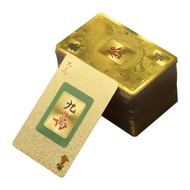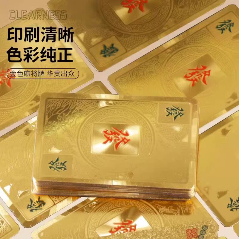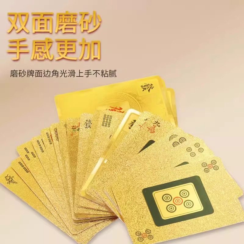 麻将牌扑克牌PVC塑料土豪金黄金防水144张大号套装桌布迷你便携式