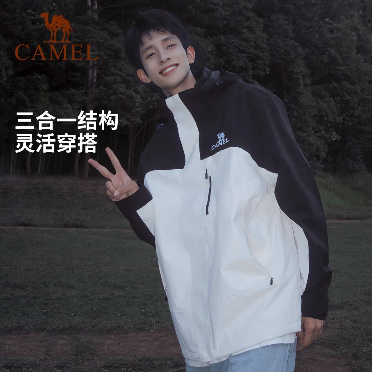 骆驼户外冲锋衣女款25年三合一鹅绒内胆三防保暖羽绒登山服外套男