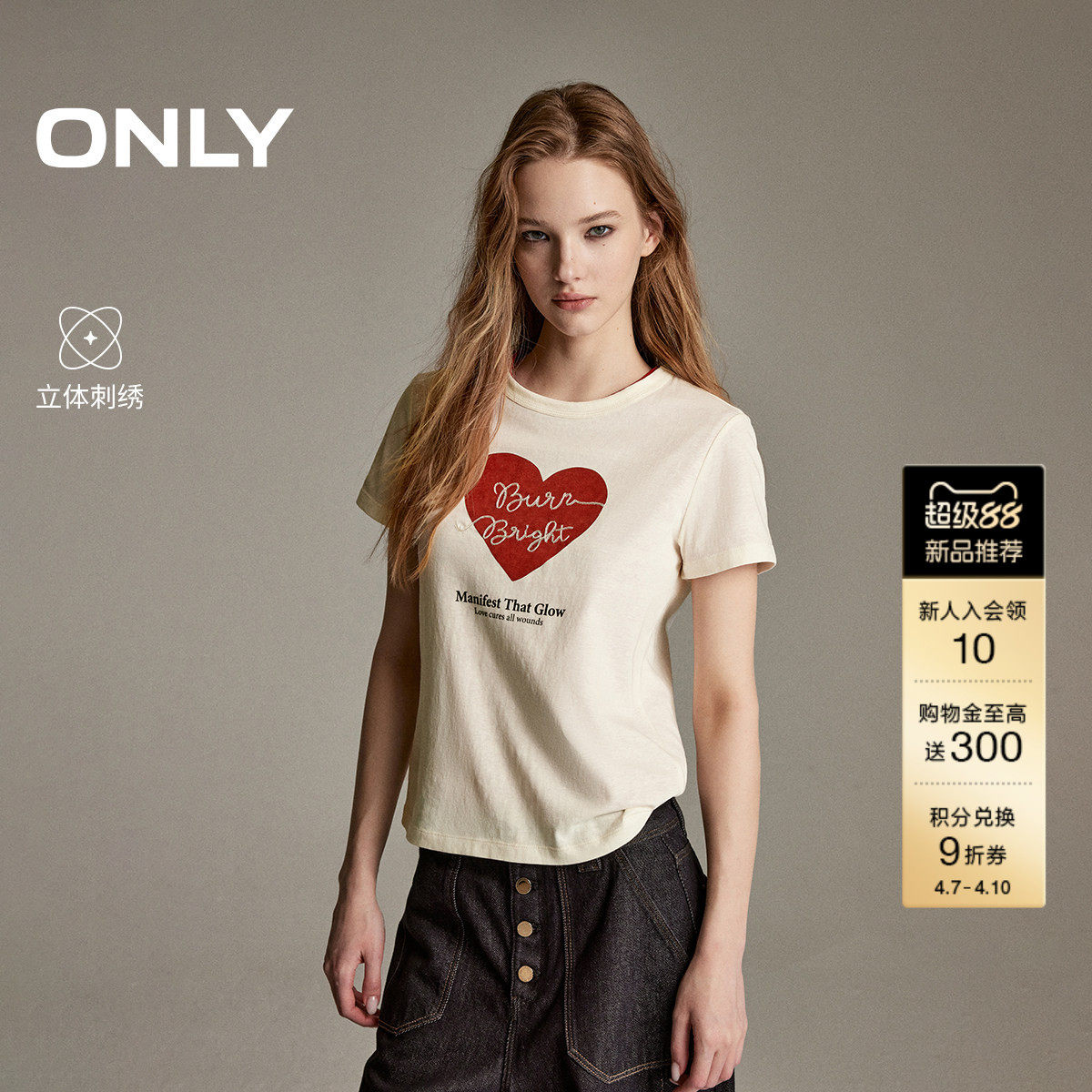 ONLY2026春季新款上衣甜美轻薄透气微透立体刺绣短款正肩T恤女