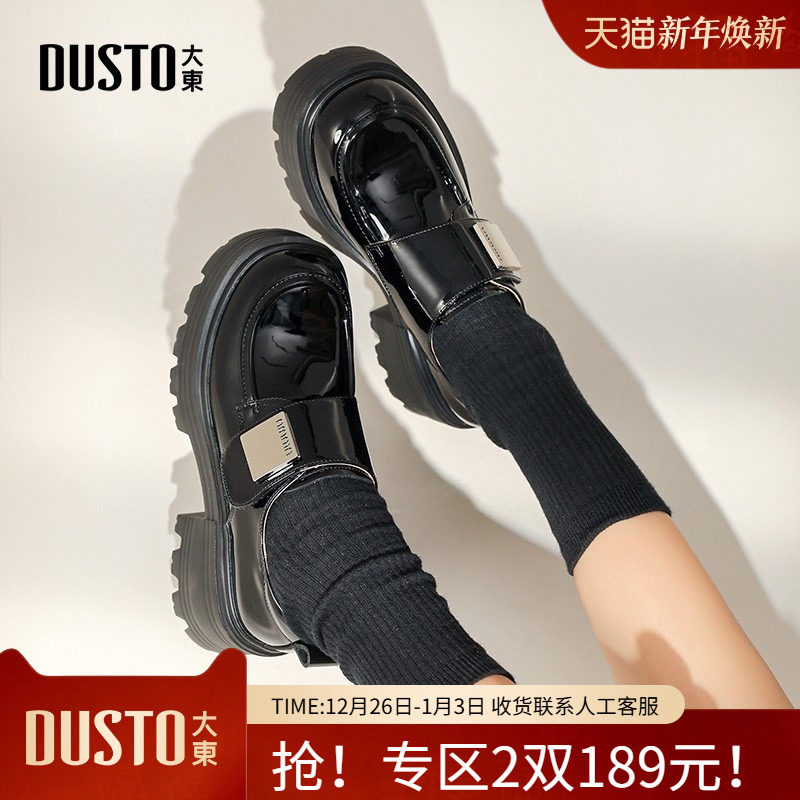 大东乐福鞋女鞋2025秋季新款休闲魔术贴小个子厚底圆头小皮鞋0677