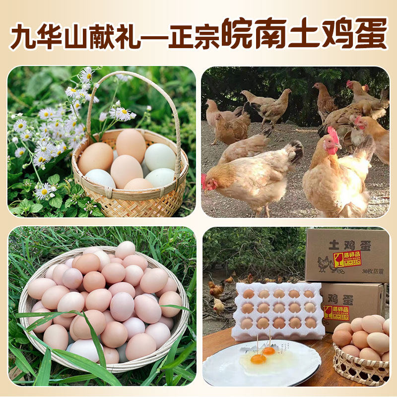 九华山土鸡蛋30枚正宗皖南富硒蛋农家散养新鲜笨鸡蛋柴鸡蛋彩箱装