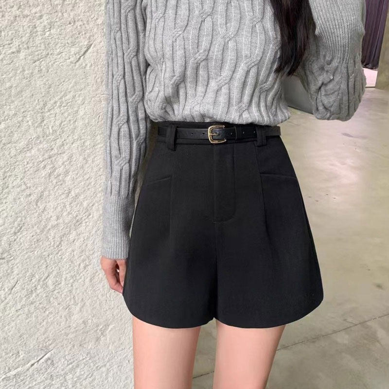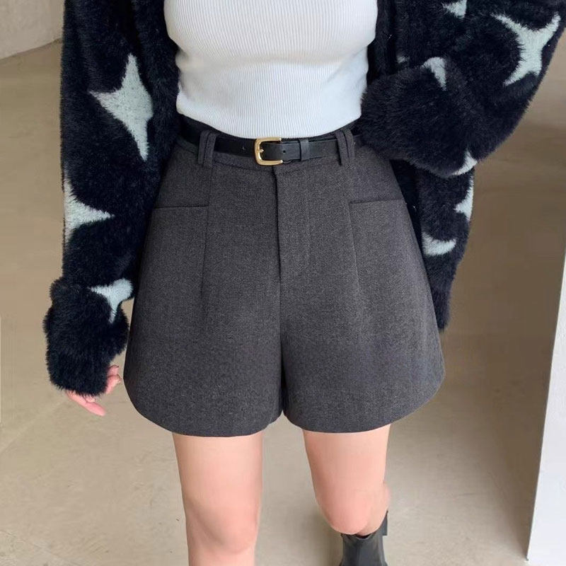 大码休闲毛呢短裤女2026新款宽松显瘦高腰a字阔腿裤外穿百搭靴裤