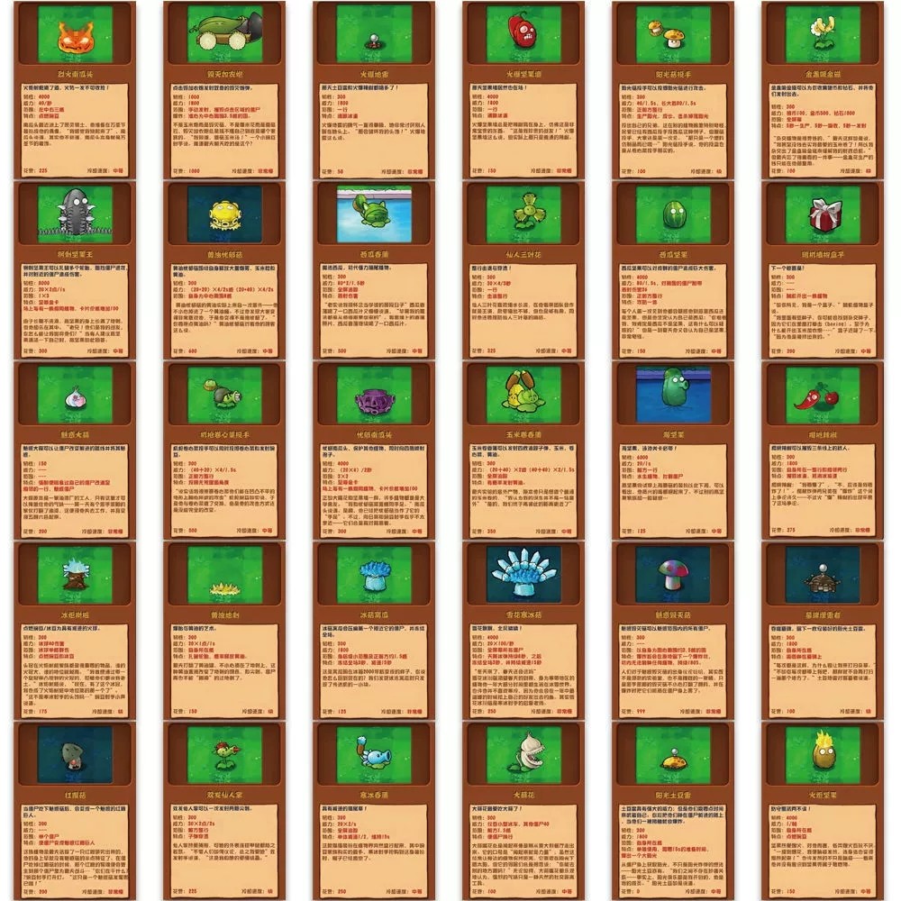 64张热门游戏卡牌图鉴小卡片杂交版植物大战僵尸贴纸装饰防水贴画