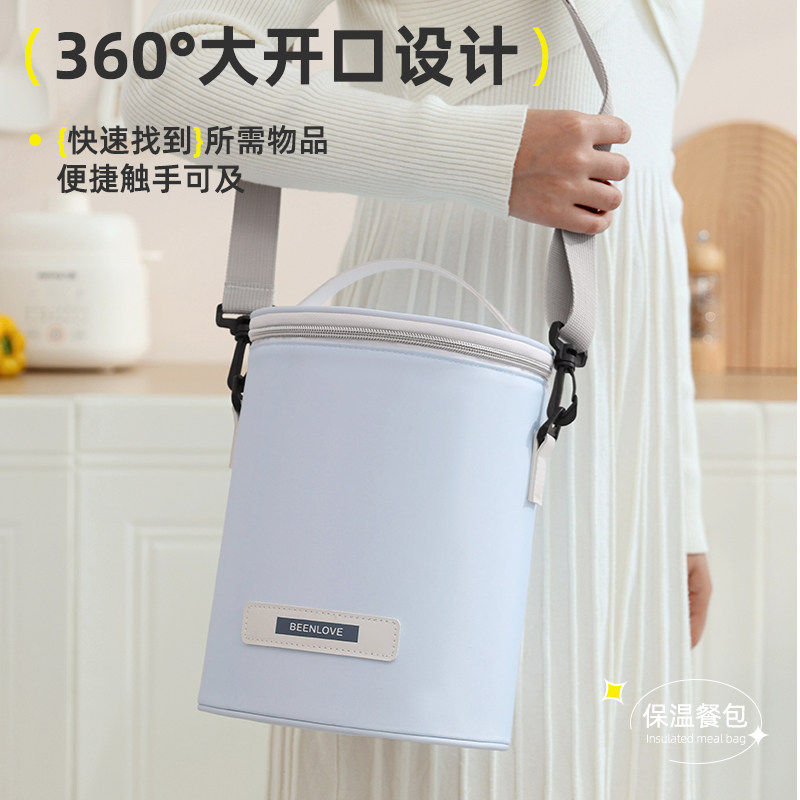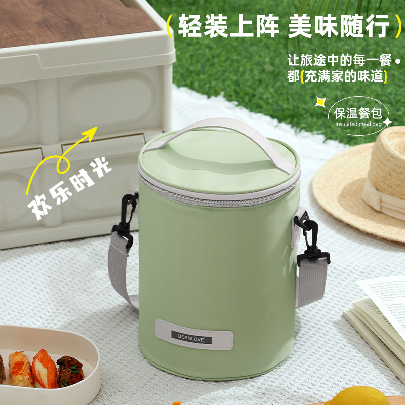 手提圆筒饭盒袋便当包大容量上班带饭保温袋学生保冷冰包加厚饭兜
