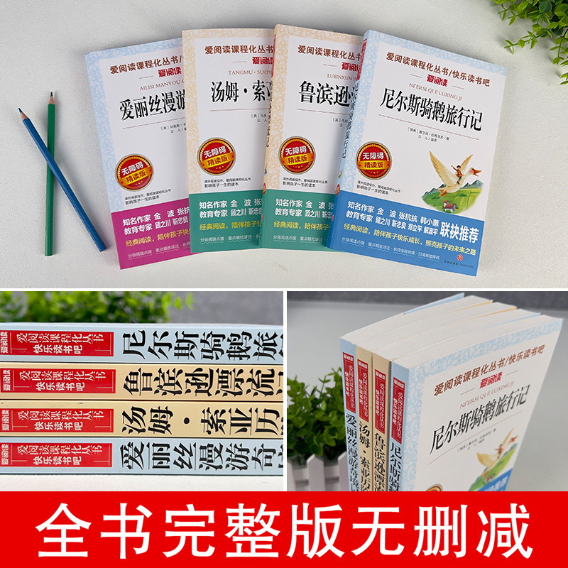 全套4册 鲁滨逊漂流记六年级下册必读的课外书正版原著完整版快乐读书吧6下童年汤姆索亚历险记尼尔斯骑鹅旅行记爱丽丝漫游奇境孙