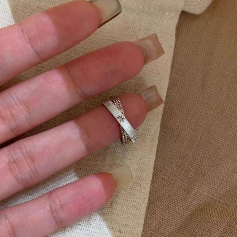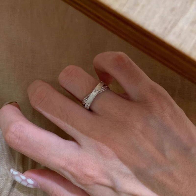 足银S999碎冰冰闭口戒指女轻奢高级感爆闪纯银指环情侣对戒尾戒