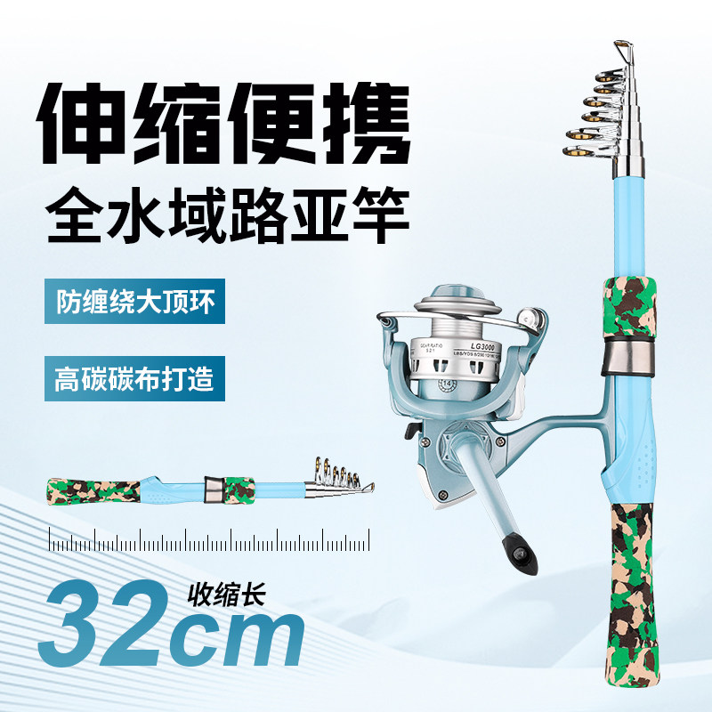 伸缩迷你短节路亚竿伸携式路亚竿抛竿32CM超硬纺车轮套装超轻远投