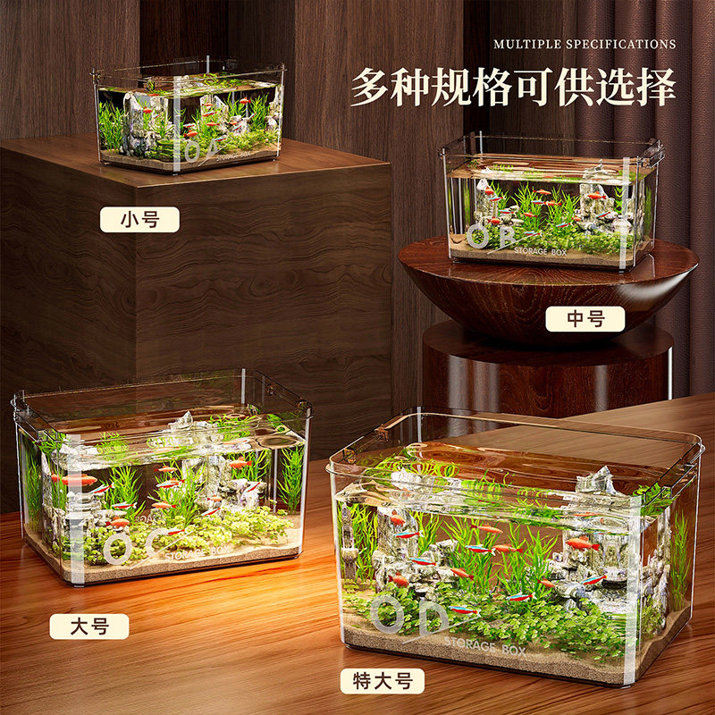 鱼缸客厅2026新款透明仿玻璃桌面办公室乌龟金鱼可视造景生态鱼缸
