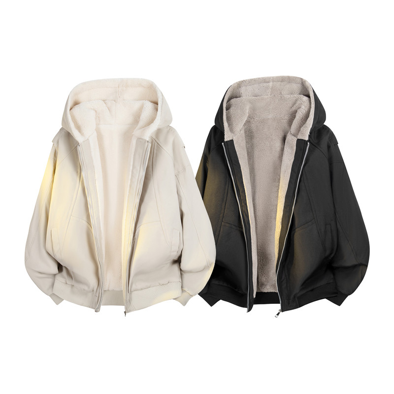 回力连帽羊羔绒棉衣男士冬季2025新款加绒加厚冬装座山雕棉服外套
