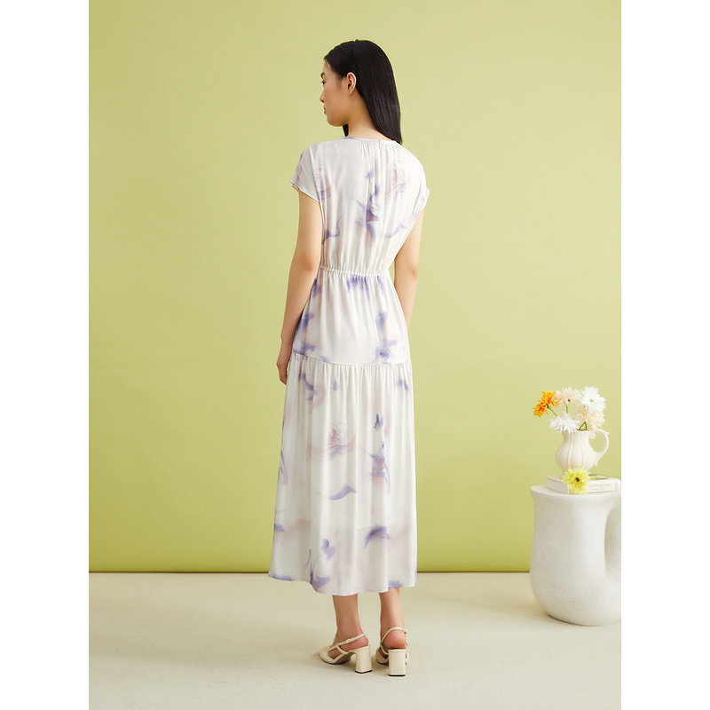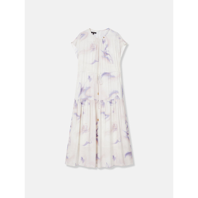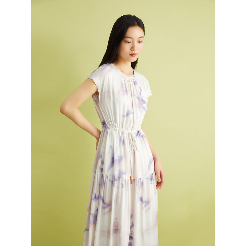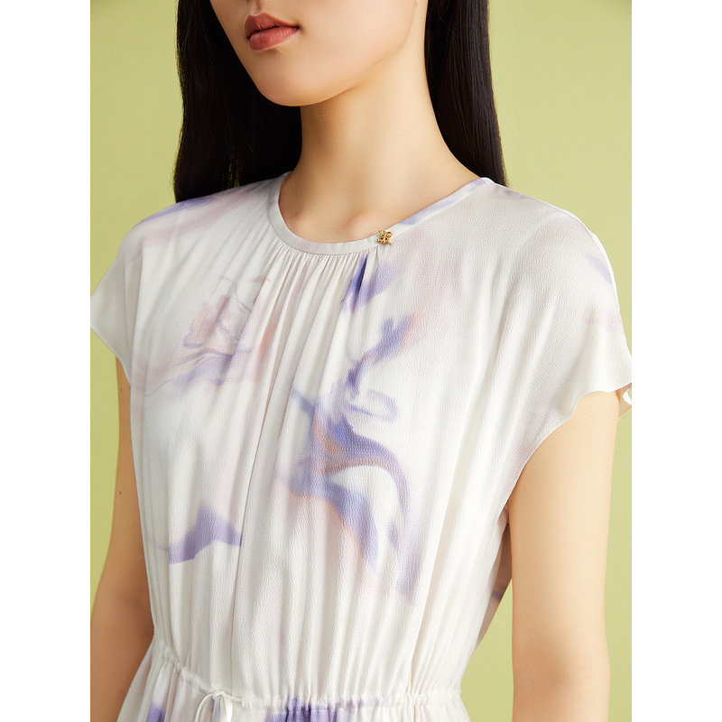 【真丝系列】YINER音儿夏季法式优雅弹力珍珠缎晕绕印花连衣裙