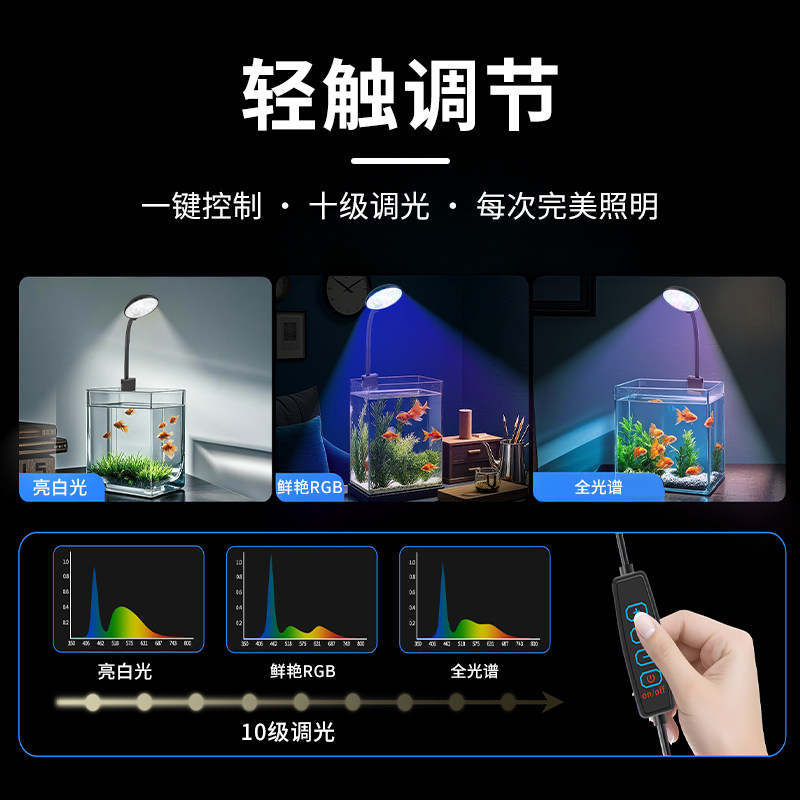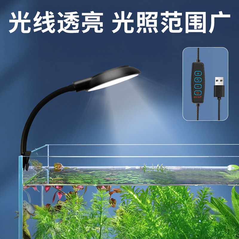 鱼缸迷你夹灯缸全光谱爆藻防水小鱼缸照明灯观赏专用led水草灯