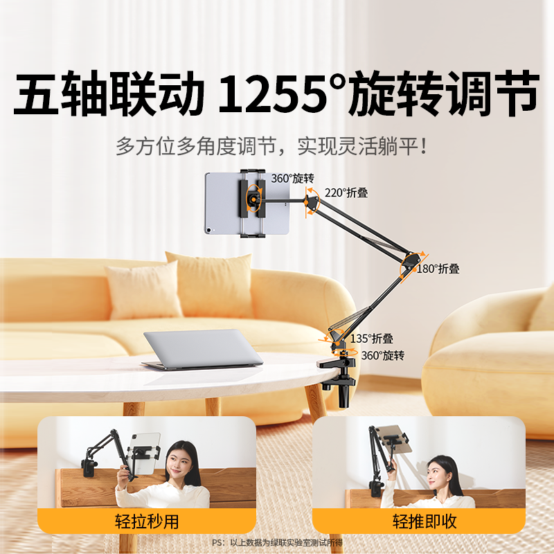 绿联平板支架手机床头懒人支架适用iPadSwitch电脑通用支架床上躺着支撑架子机械桌面悬臂宿舍直播神器夹子
