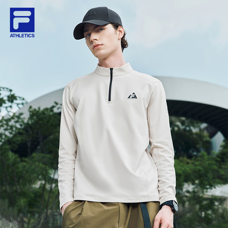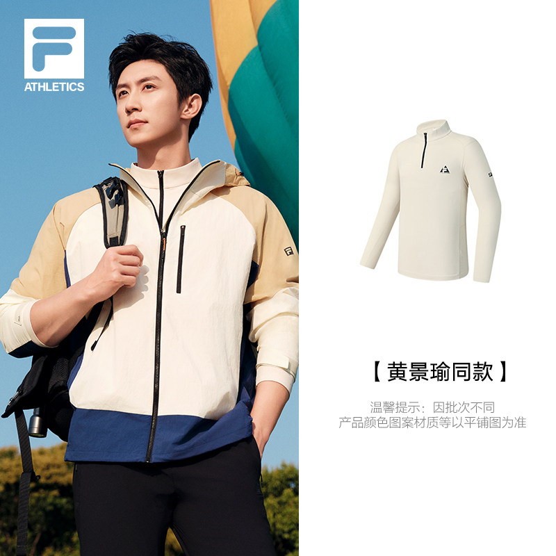 黄景瑜同款FILA 斐乐官方男长袖T恤秋季新款运动训练半拉链上衣