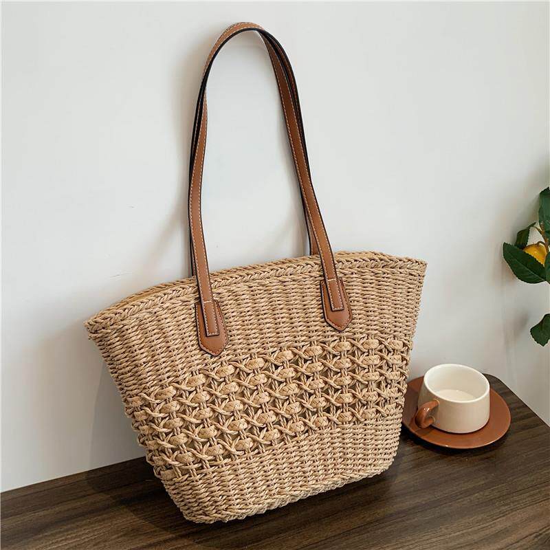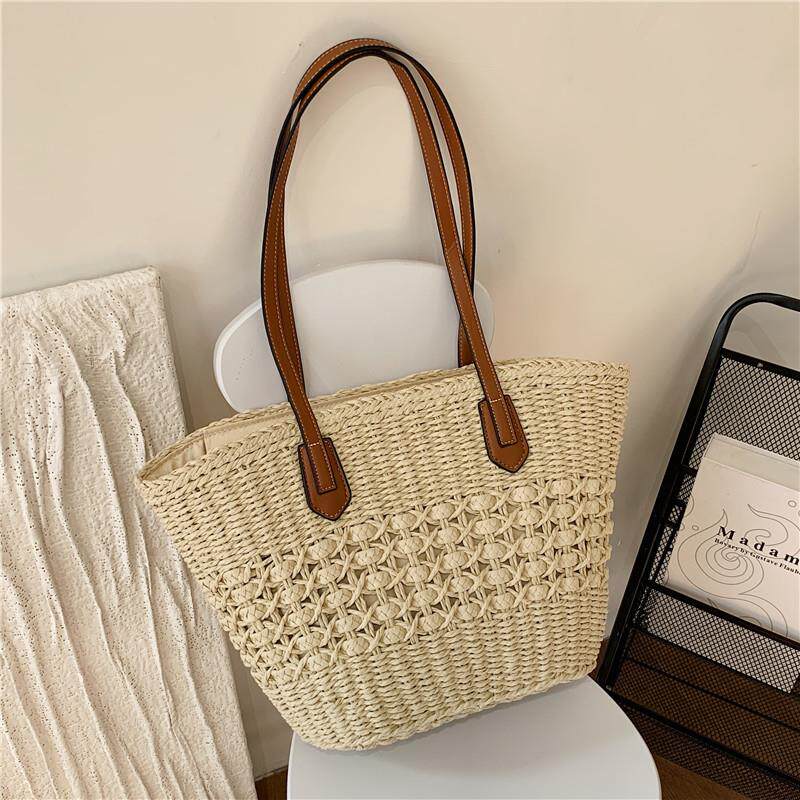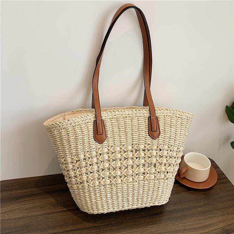 大容量单肩托特包田园手提草编包菜篮子海边度假藤编包沙滩包