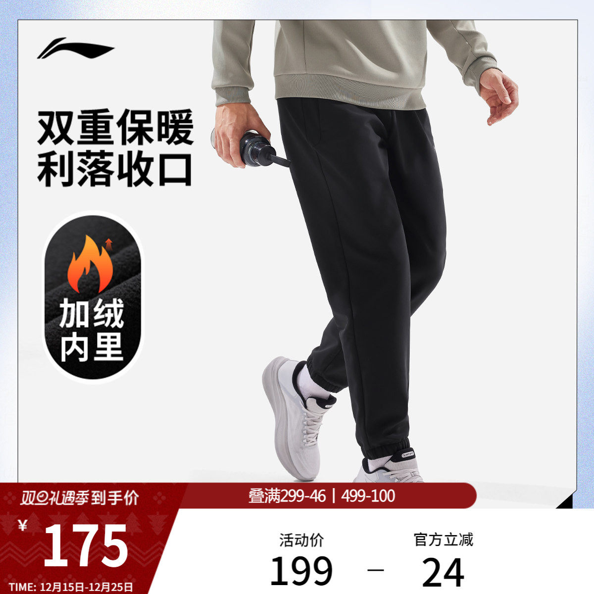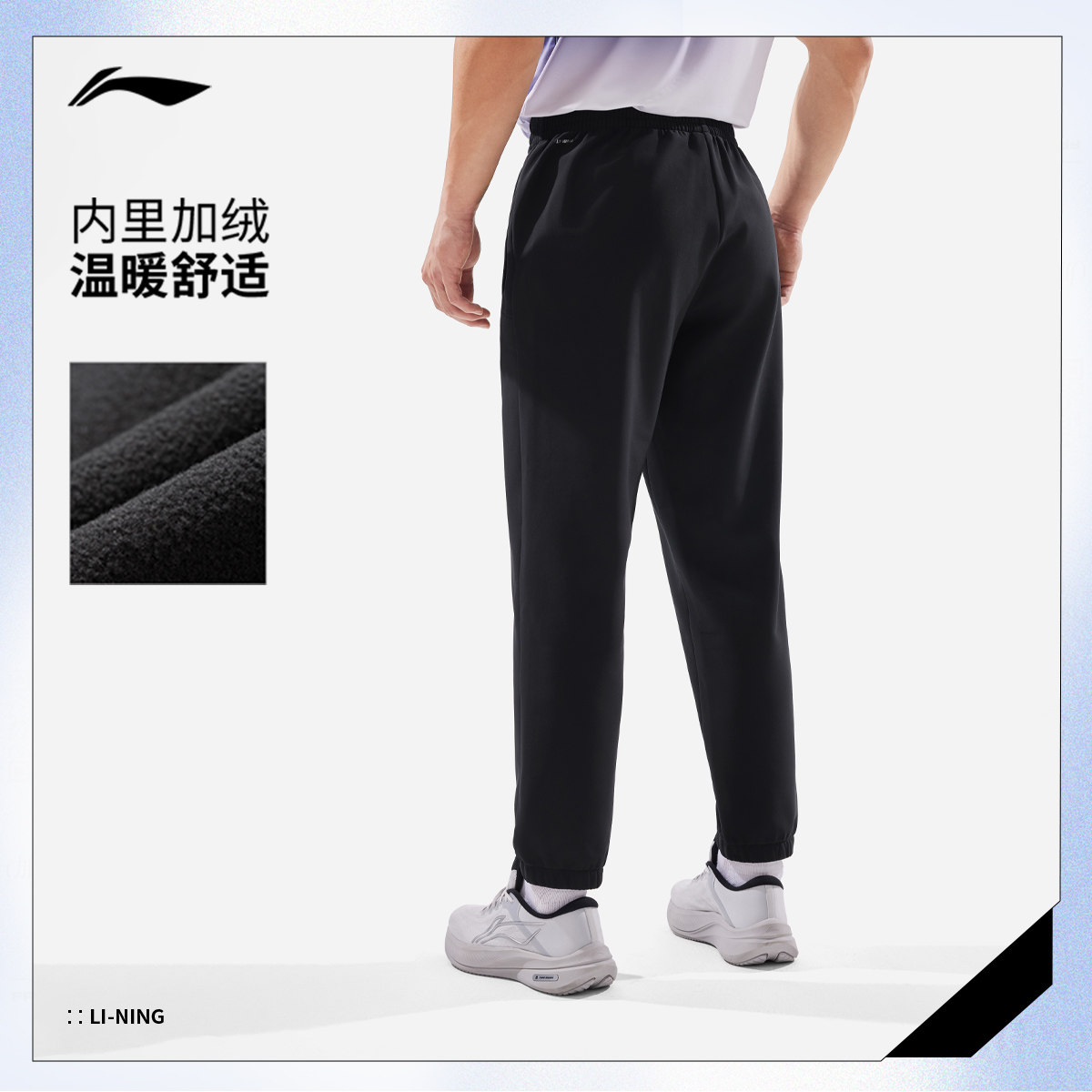 李宁运动长裤男士2025新款健身长裤冬季加绒保暖束脚梭织运动裤