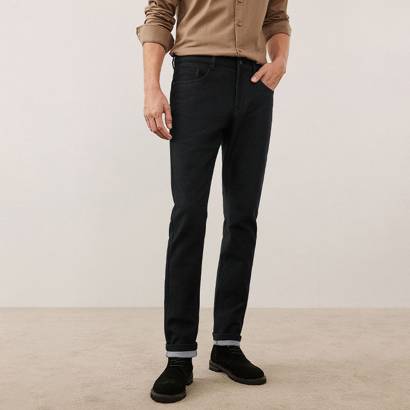 森柔牛仔|森马牛仔裤男款磨毛小脚裤子通勤基础百搭冬季长裤弹力